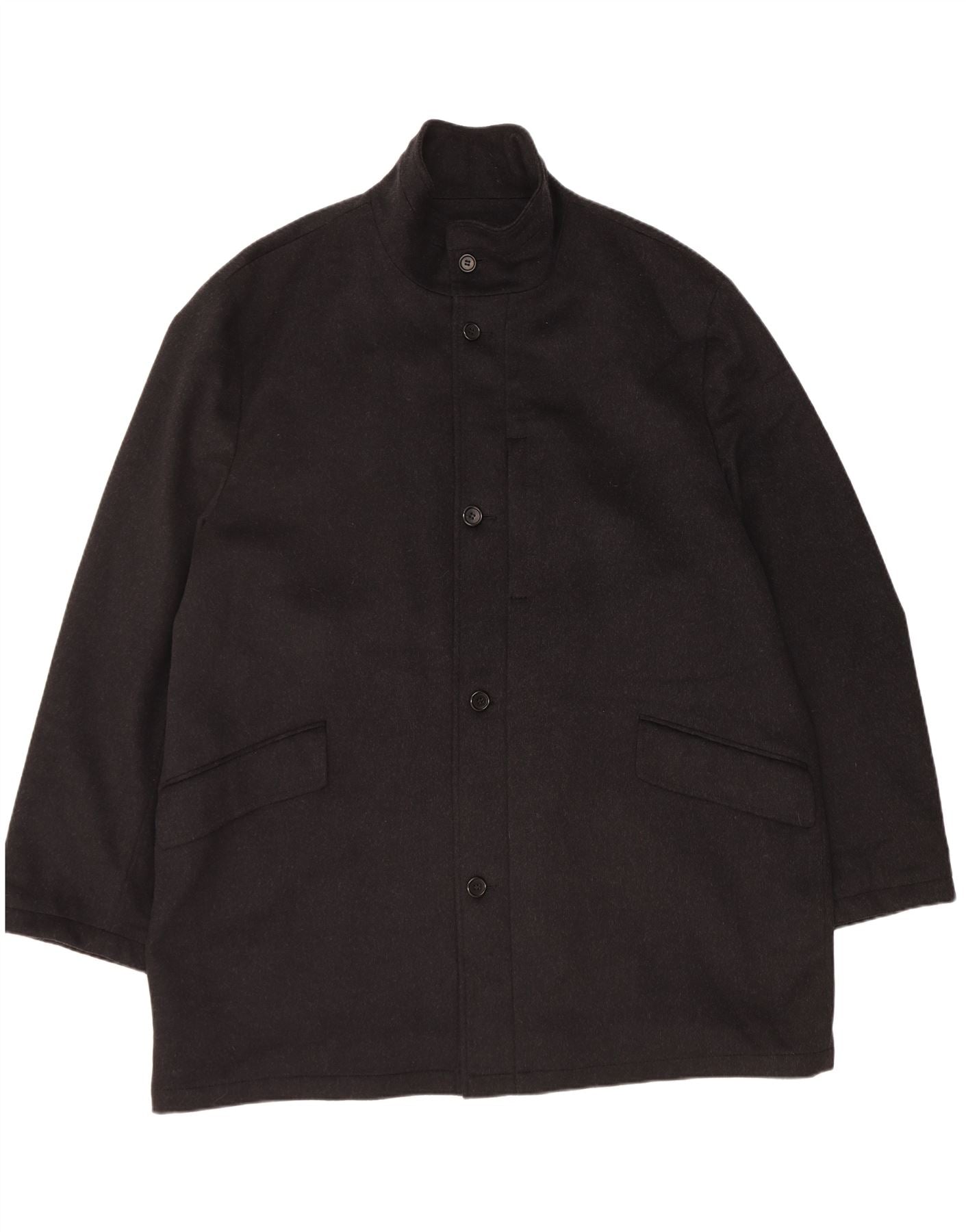 - AI Description: This Pierre Cardin mens coat is crafted from a luxurious wool and cashmere blend. Its rich black fabric offers a refined, smooth texture. The classic design features a mock neck and a button front closure. Long sleeves and a relaxed fit ensure comfort and ease of movement. This padded coat includes practical pockets and a removable lining for versatility.