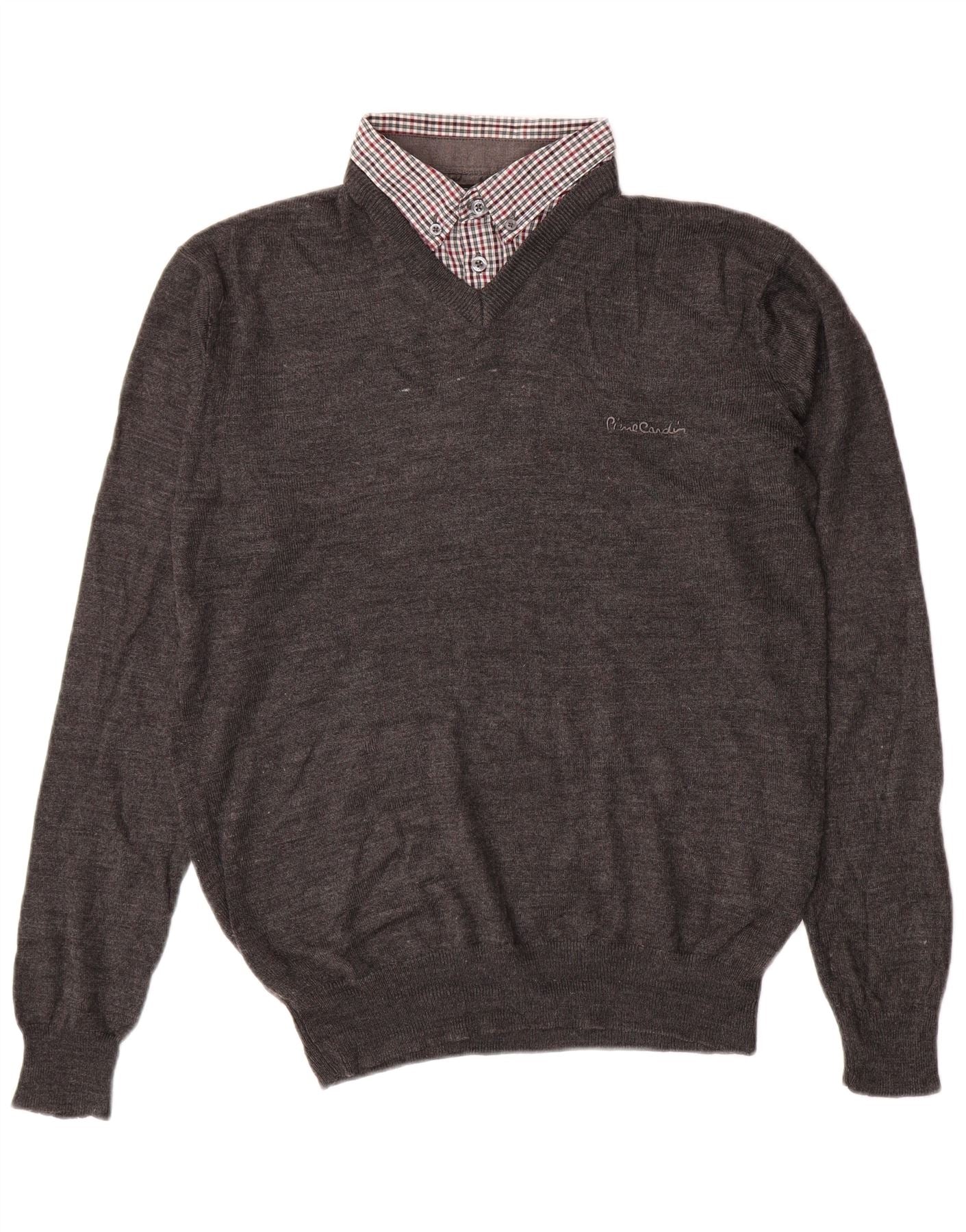 PIERRE CARDIN Męski sweter z dekoltem w kształcie litery V, średnioszary, akrylowy, klasyczny