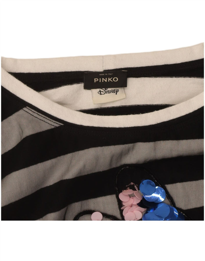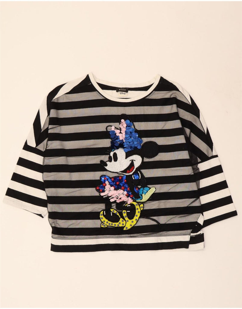PINKO Womens Disney Crop Top 3/4 Sleeve UK 14 Large White Striped Nautical