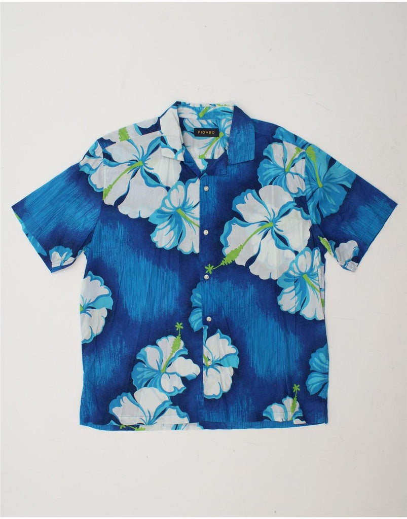 Męska koszula z krótkim rękawem PIOMBO, duża niebieska, bawełniana w kwiaty