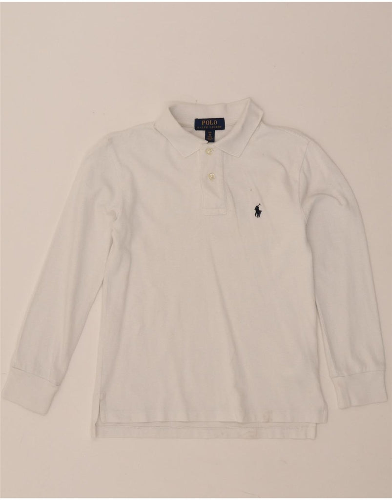 POLO RALPH LAUREN Boys Long Sleeve Polo Shirt 7-8 Years White Cotton