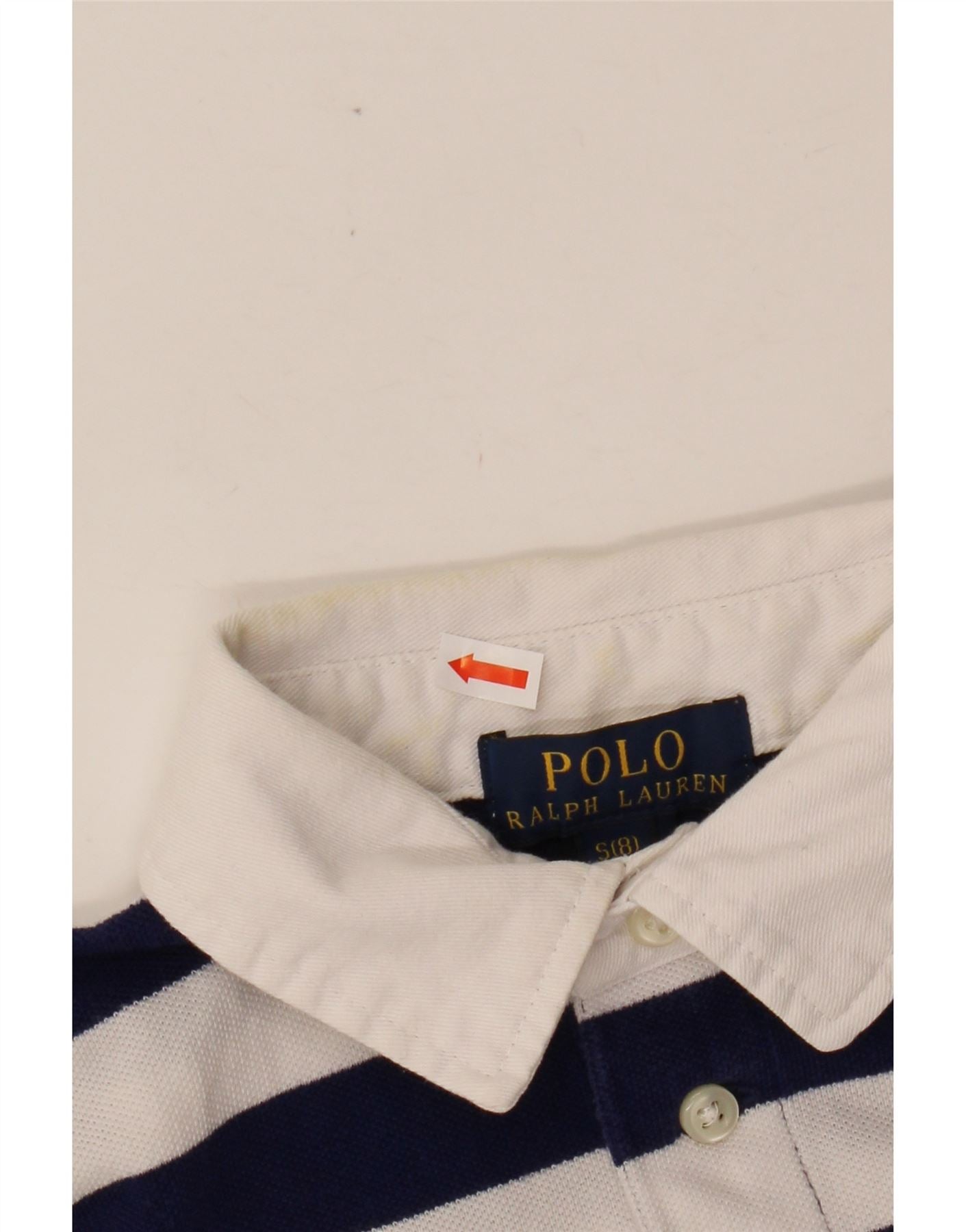 POLO RALPH LAUREN Boys Polo Shirt 7-8 Years Small Navy Blue Striped Cotton