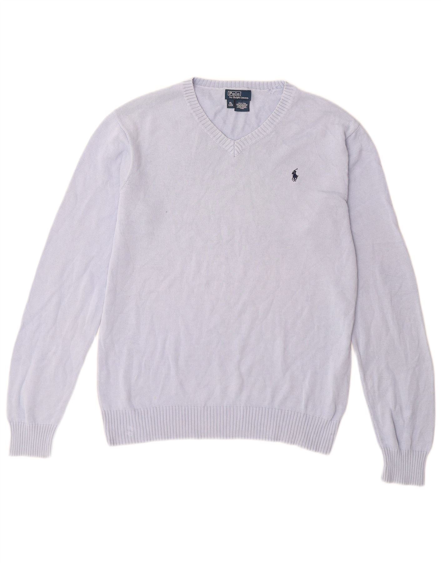 POLO RALPH LAUREN Chłopięcy sweter z dekoltem w kształcie litery V, 13-14 lat, XL, niebieski, bawełniany