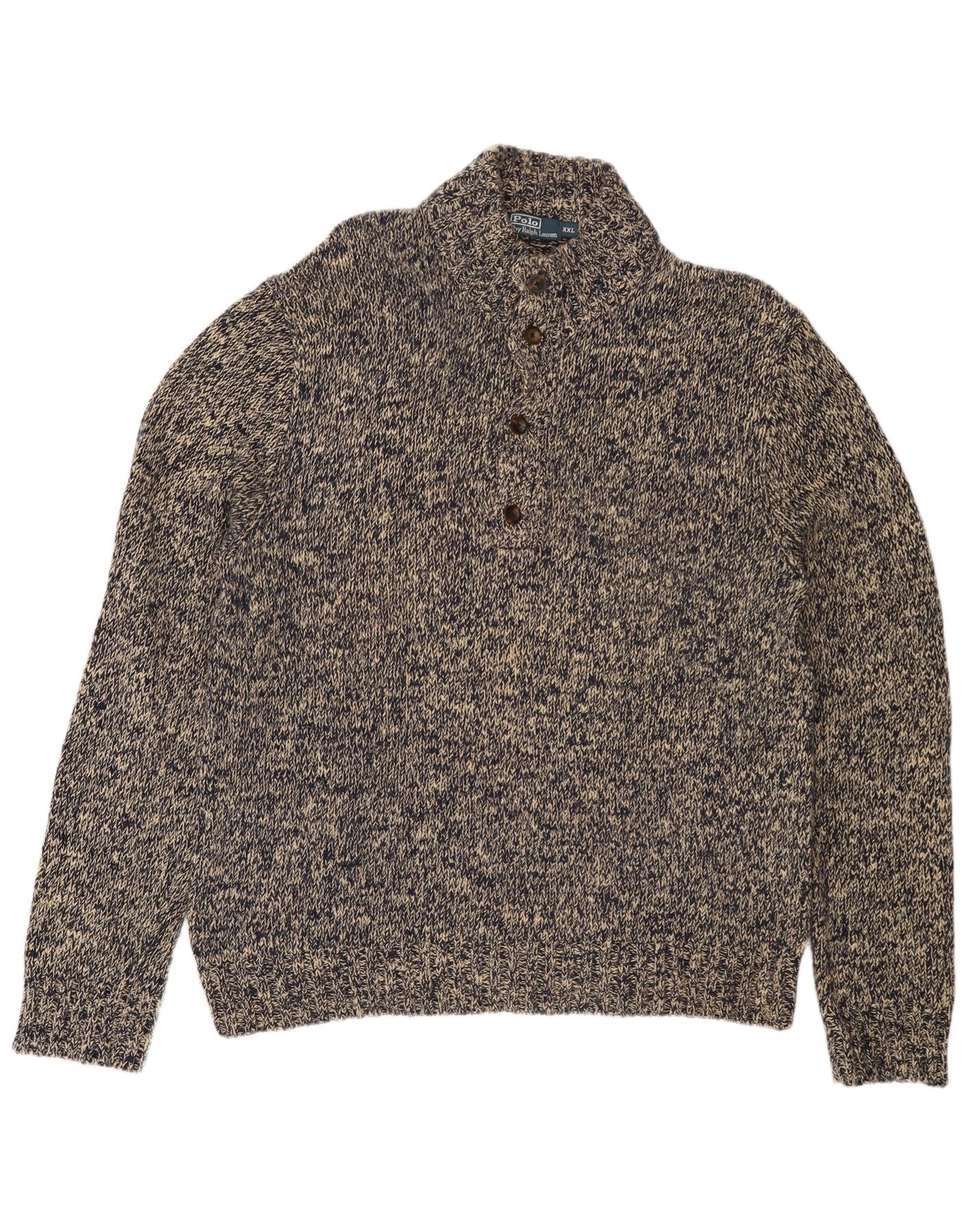 POLO RALPH LAUREN Męski sweter zapinany na guziki, 2XL, szary, bawełniany w plamki