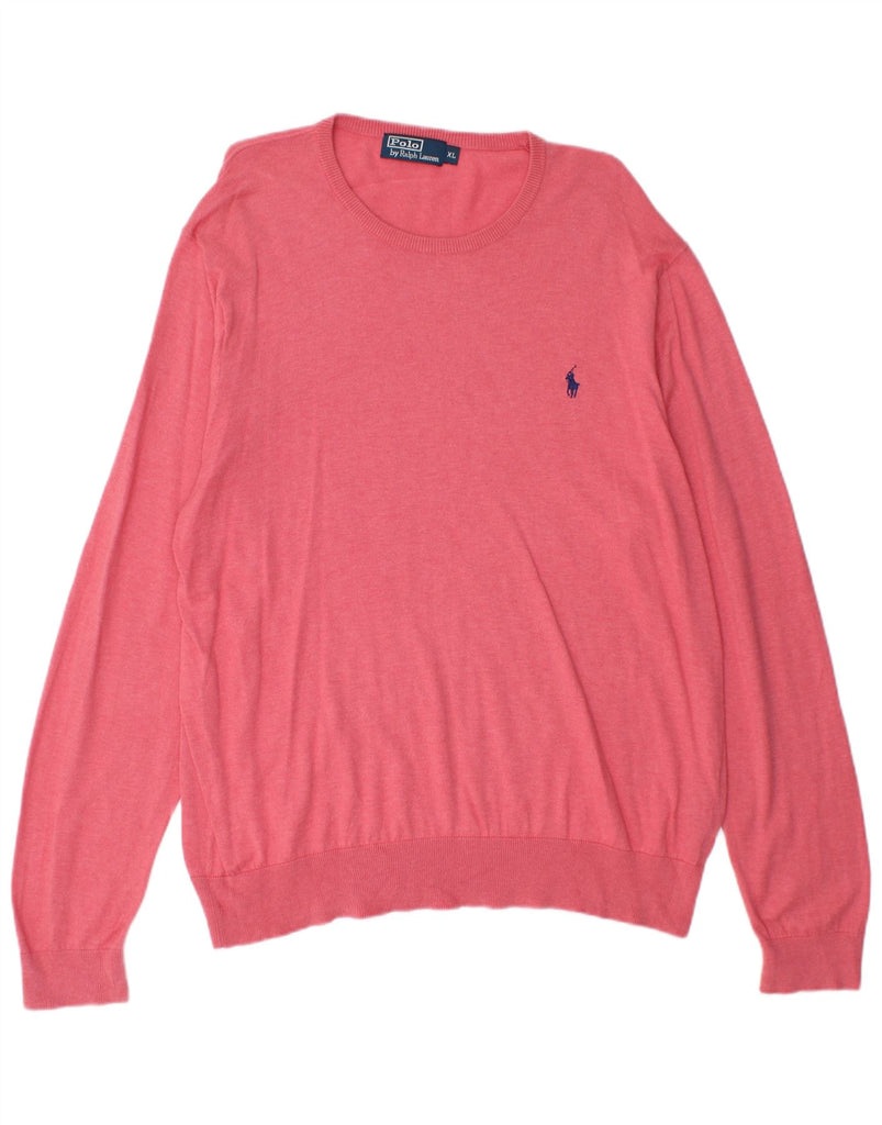POLO RALPH LAUREN Męski sweter z okrągłym dekoltem XL, różowy, bawełniany