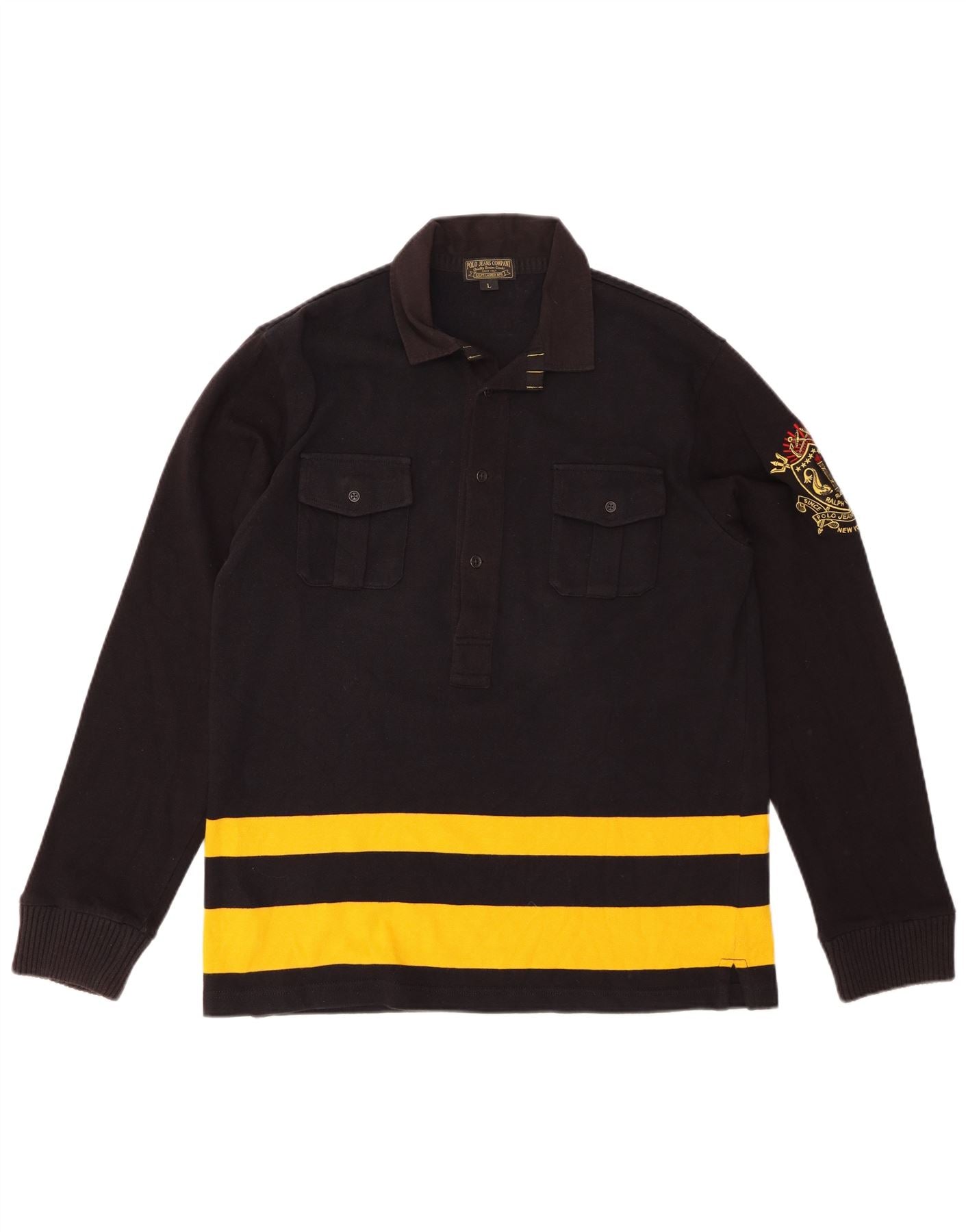POLO RALPH LAUREN Męska koszulka polo do rugby z długim rękawem, w duże czarne paski