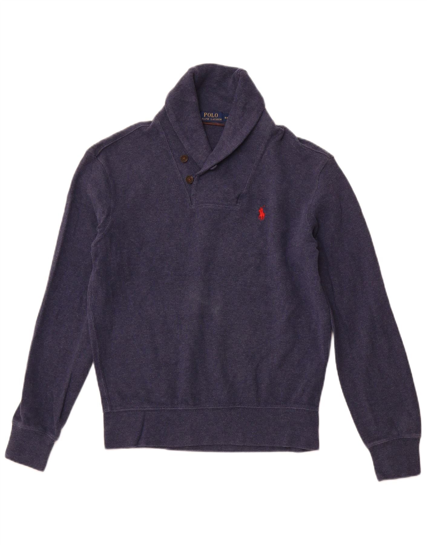 POLO RALPH LAUREN Męski sweter z szalowym dekoltem, mały, granatowy, bawełniany
