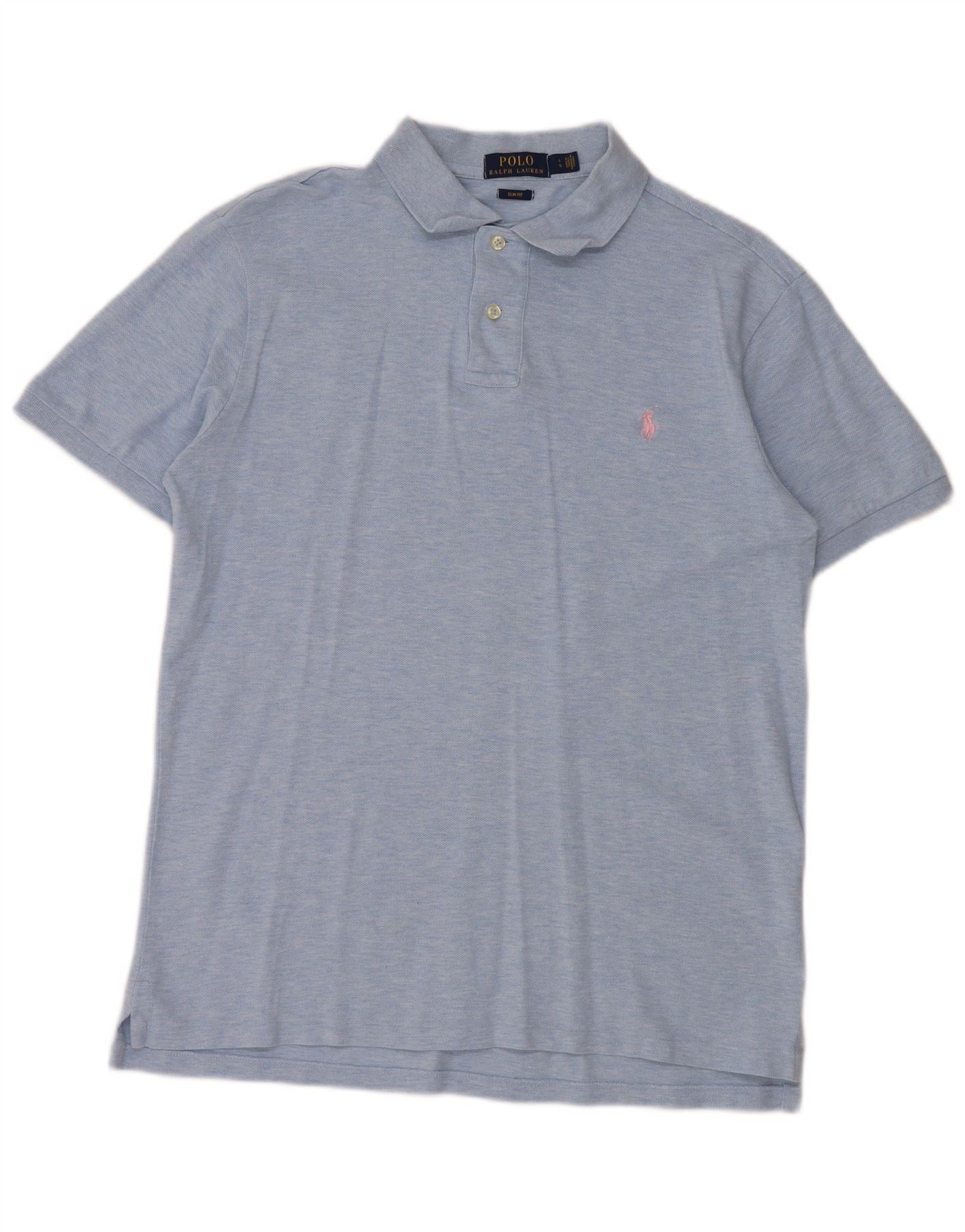 POLO RALPH LAUREN Męska koszulka polo slim fit, duża, niebieska, bawełniana w cętki