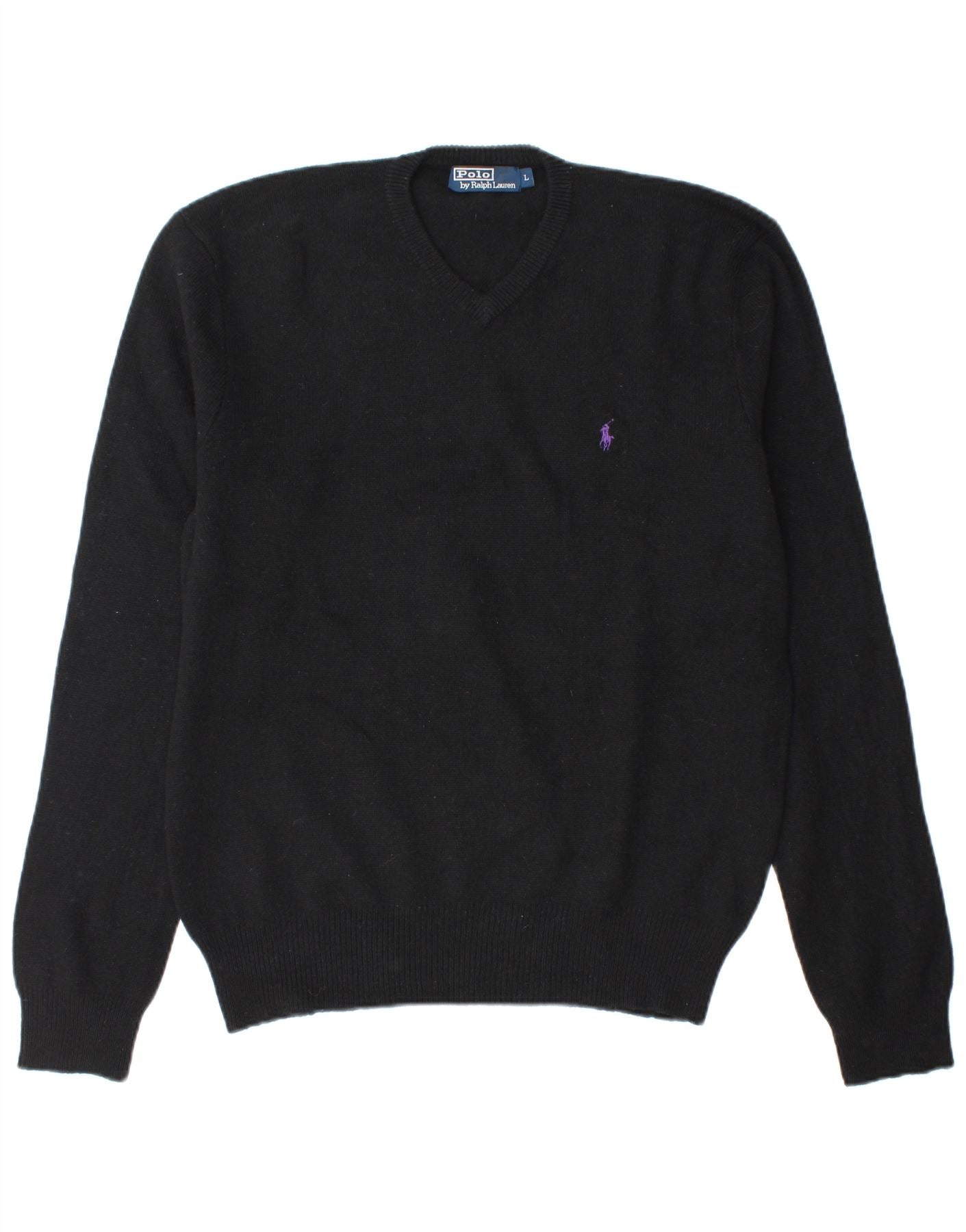 Męski sweter Polo Ralph Lauren z dekoltem w kształcie litery V, duży, czarny, z owczej wełny