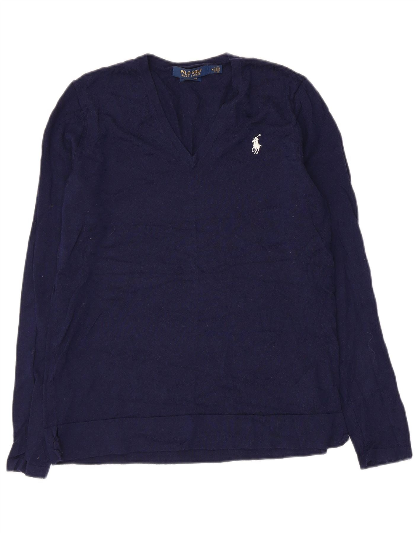Sweter damski Polo Ralph Lauren z dekoltem w kształcie litery V, UK 12, średni granatowy wełniany