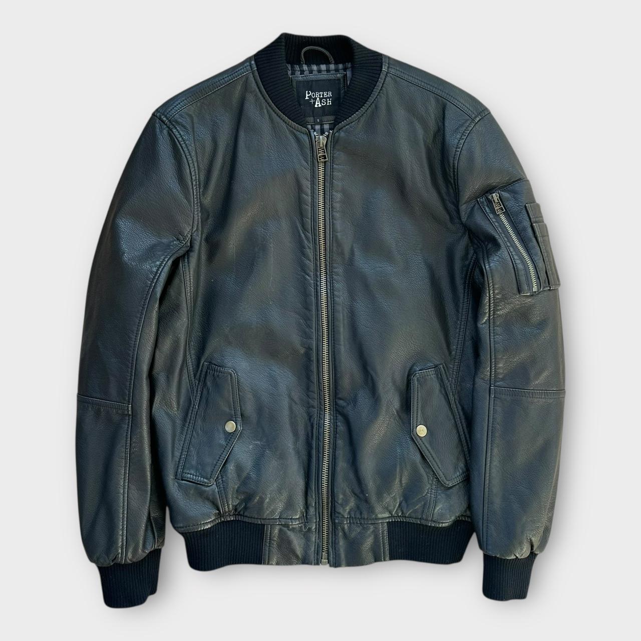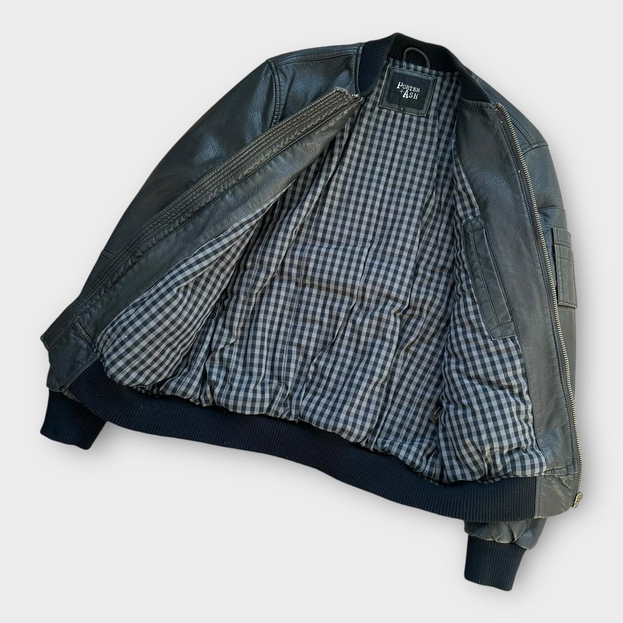 Skórzana kurtka w stylu bomber Porter i Ash w kolorze czarnym, zapinana na zamek, z wzorzystą, lekko pikowaną podszewką
