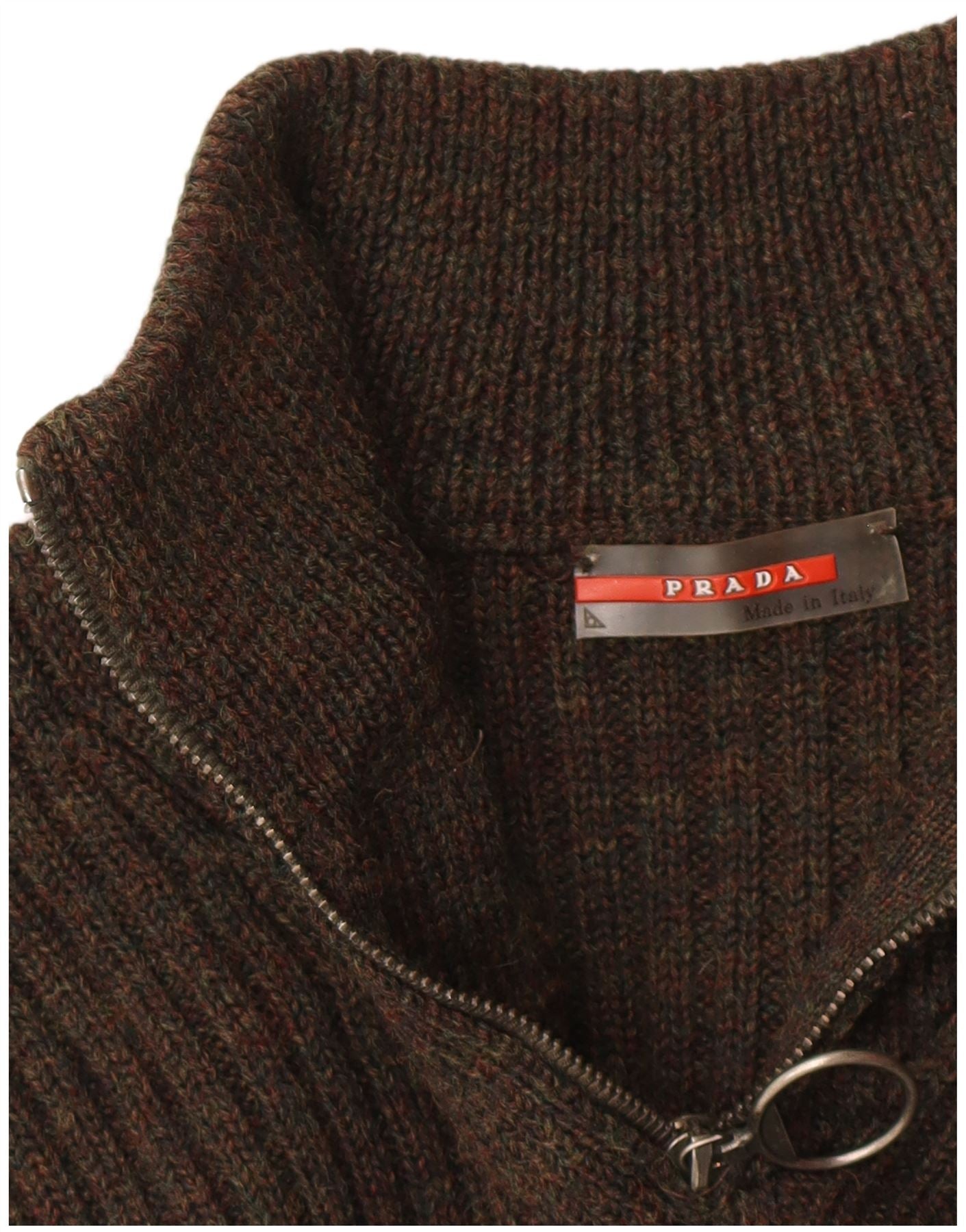 Damski sweter z zamkiem PRADA IT 48 XL, brązowa, dziewicza wełna