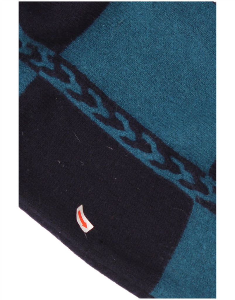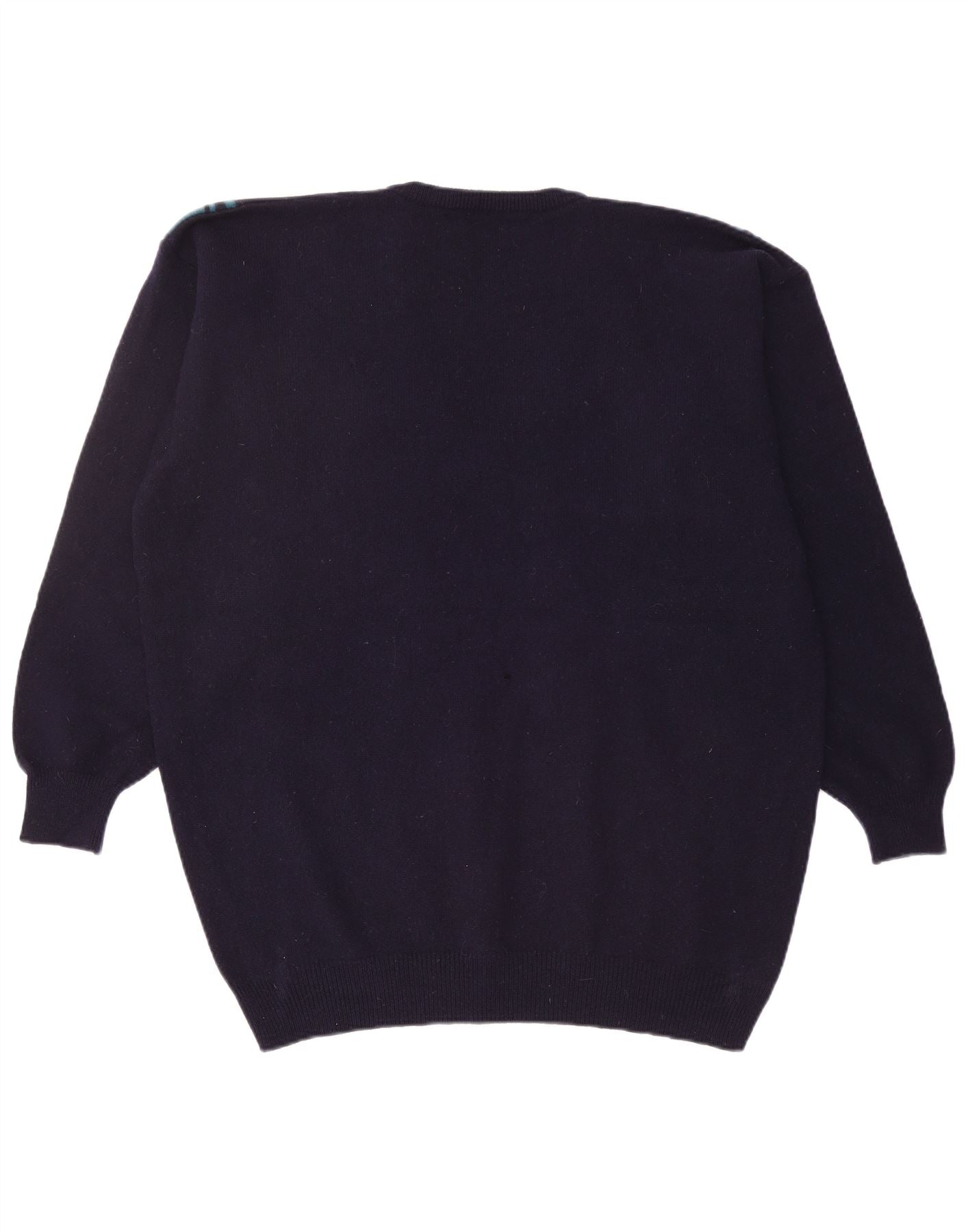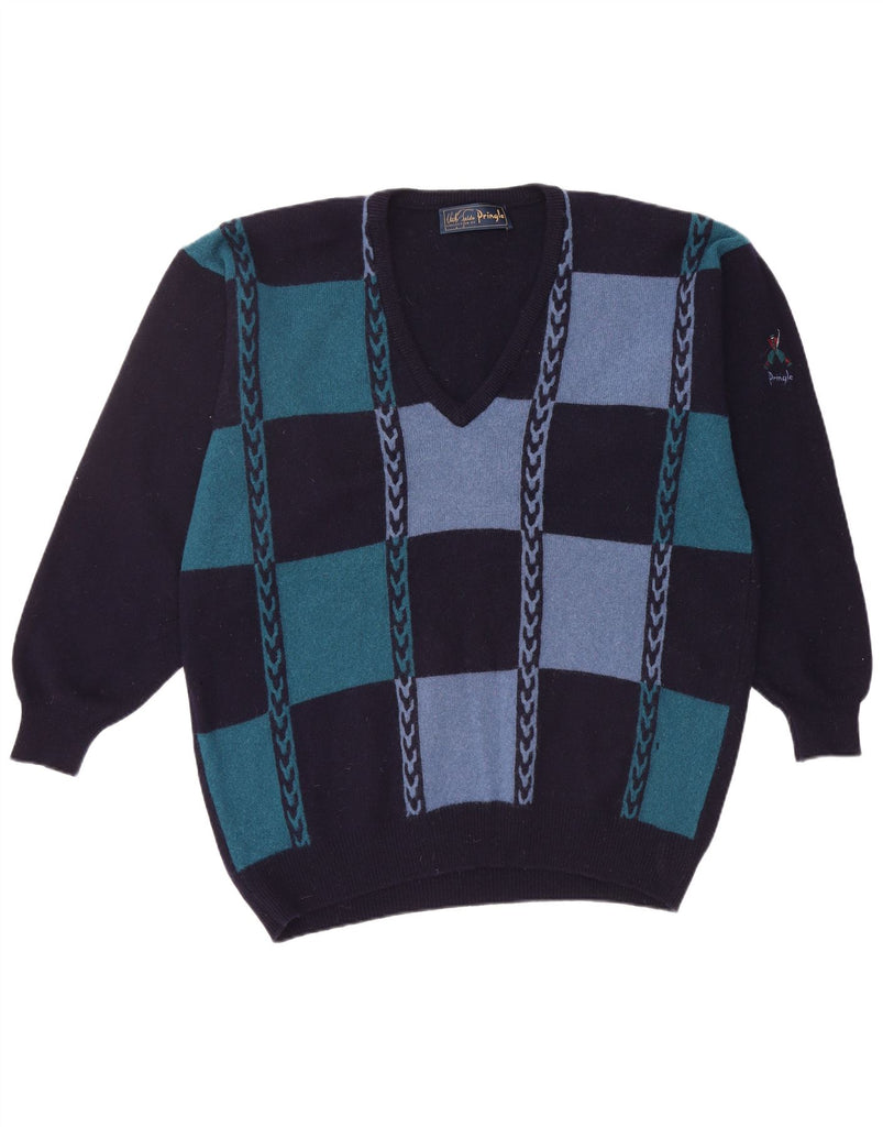PRINGLE Mens V-Neck Jumper Sweater Large Navy Blue Geometric New Wool