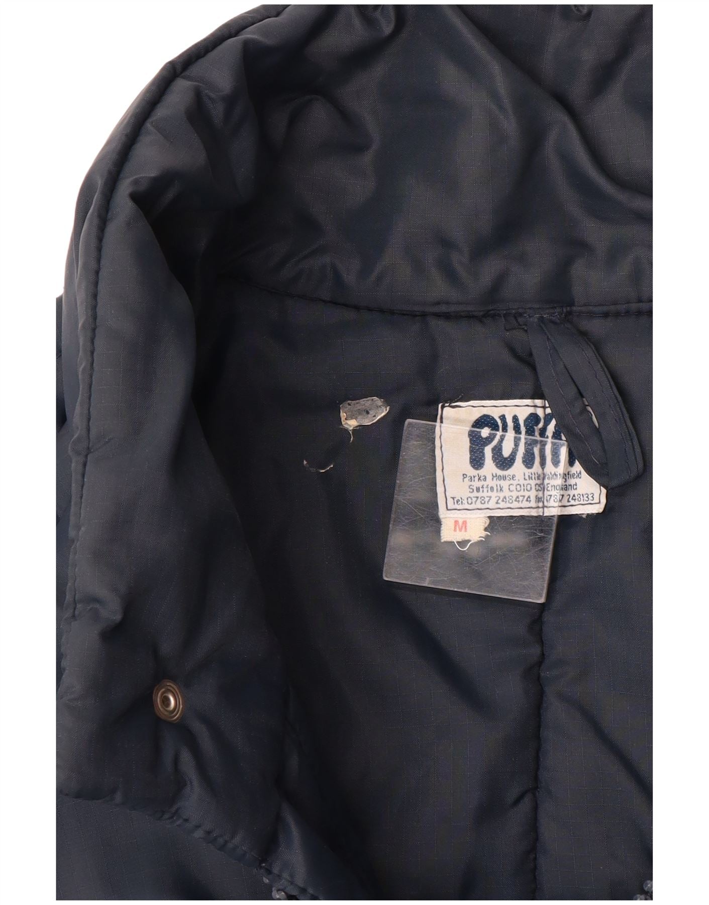 - AI Description: This Puffa mens padded jacket comes in a rich navy blue woven fabric. Its padded construction offers warmth and comfort. It features a classic collared neckline and long sleeves. The regular fit ensures comfortable wear. A five button front closure provides a neat finish. Practical pockets are included for convenience. The jacket is fully lined and offers thermal properties.