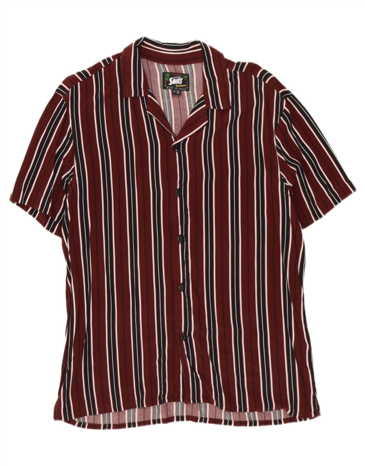 PULL & BEAR Męska koszula z krótkim rękawem, duża, bordowa, wiskozowa w paski