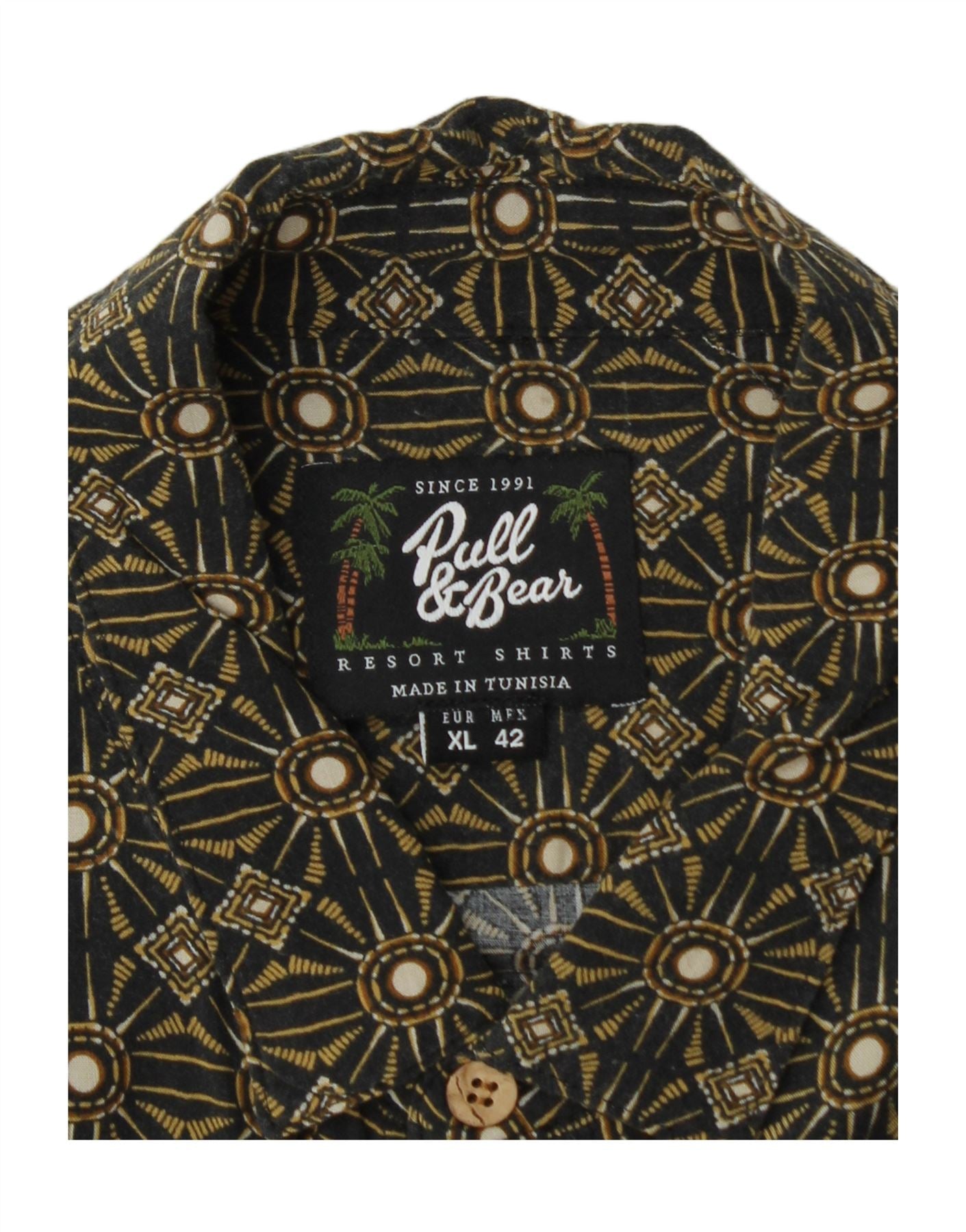 Męska koszula z krótkim rękawem Pull & Bear, XL, khaki, w geometryczne wzory