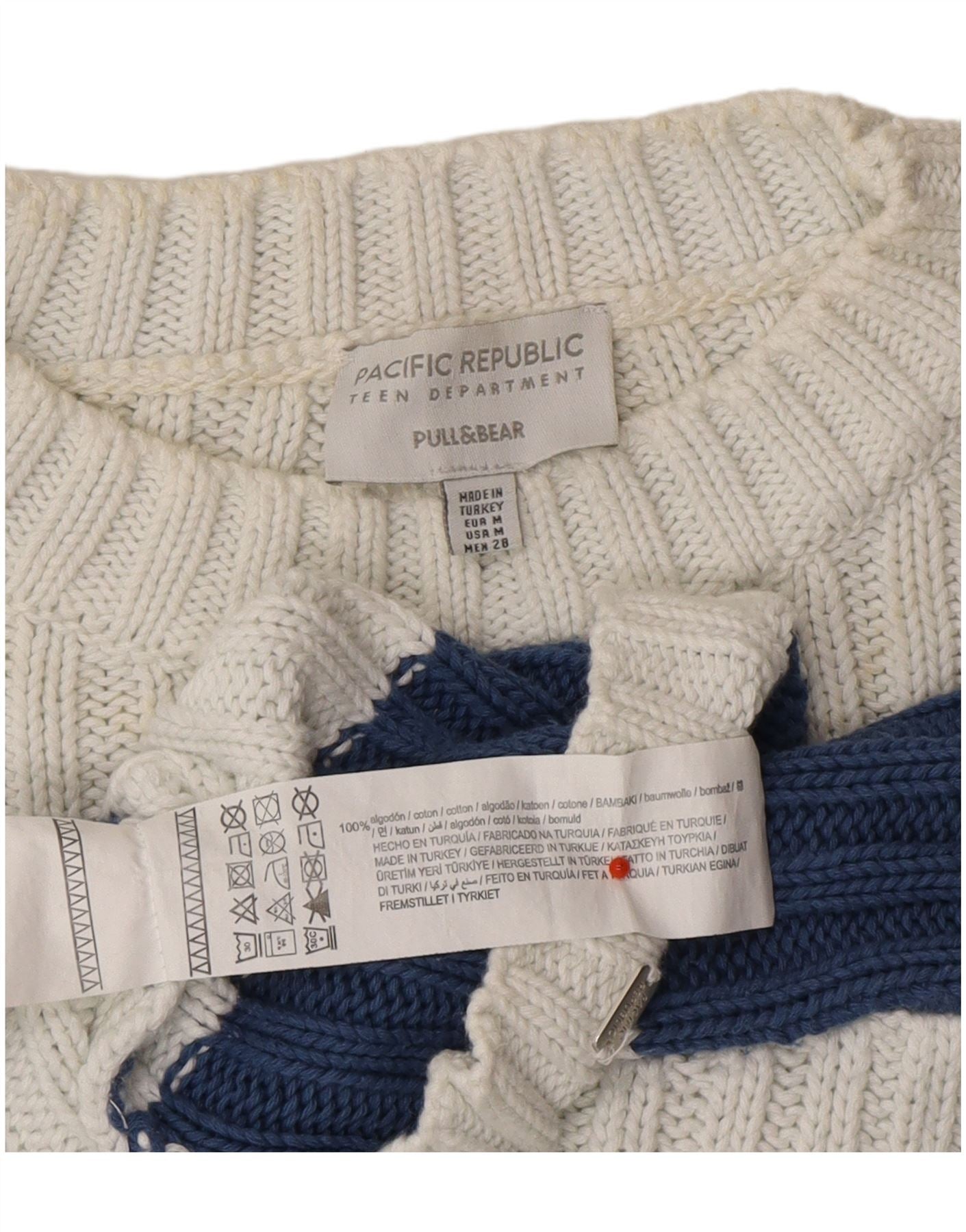 PULL & BEAR Womens Oversized Crew Neck Jumper Sweater UK 14 Medium White