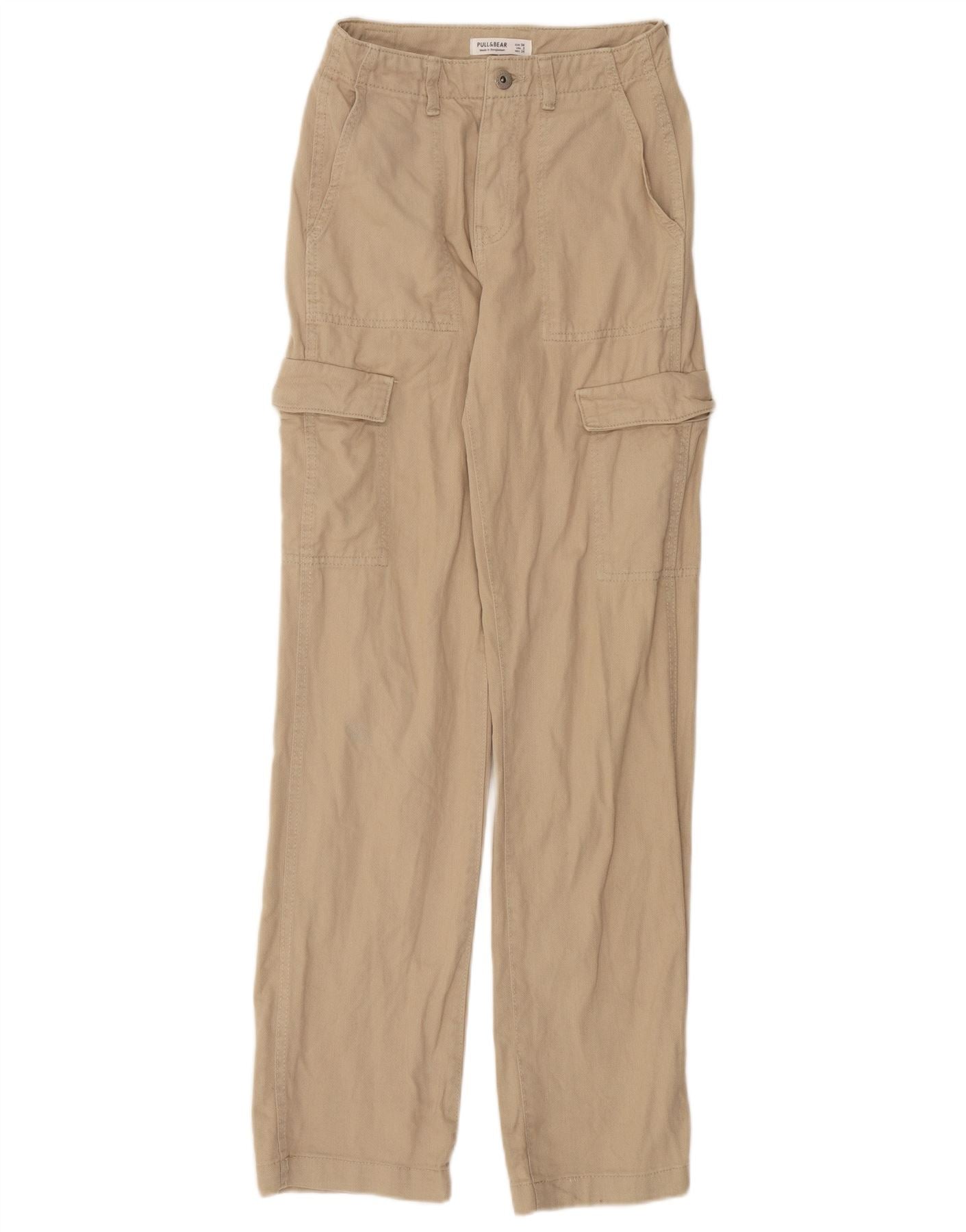 PULL & BEAR Womens Straight Cargo Trousers EU 34 2XS W24 L33 Beige Cotton