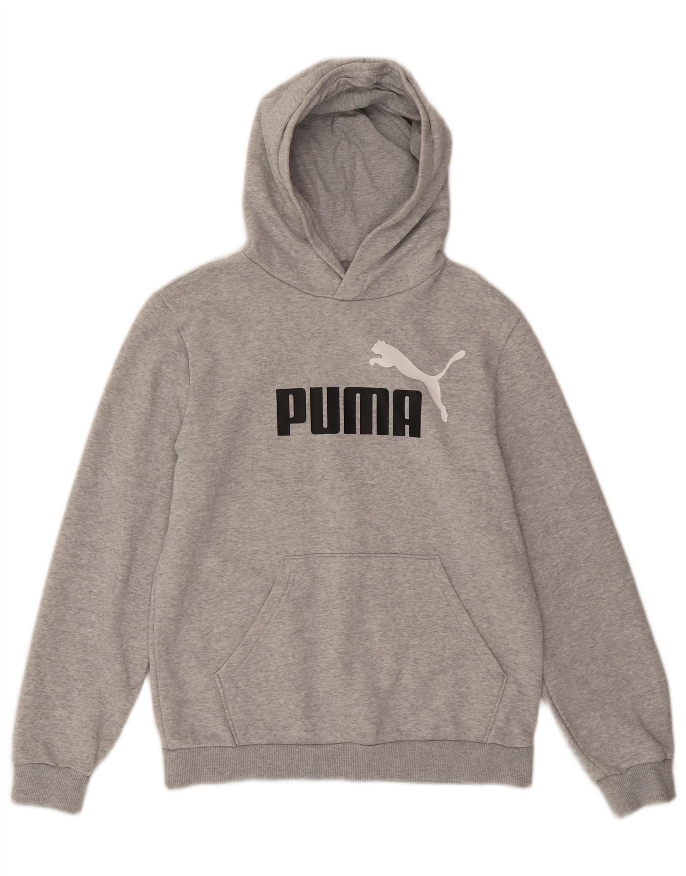 Chłopięcy sweter z kapturem i grafiką PUMA, 13-14 lat, szara bawełna