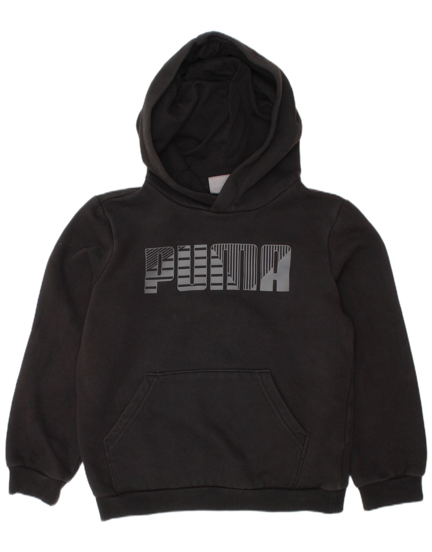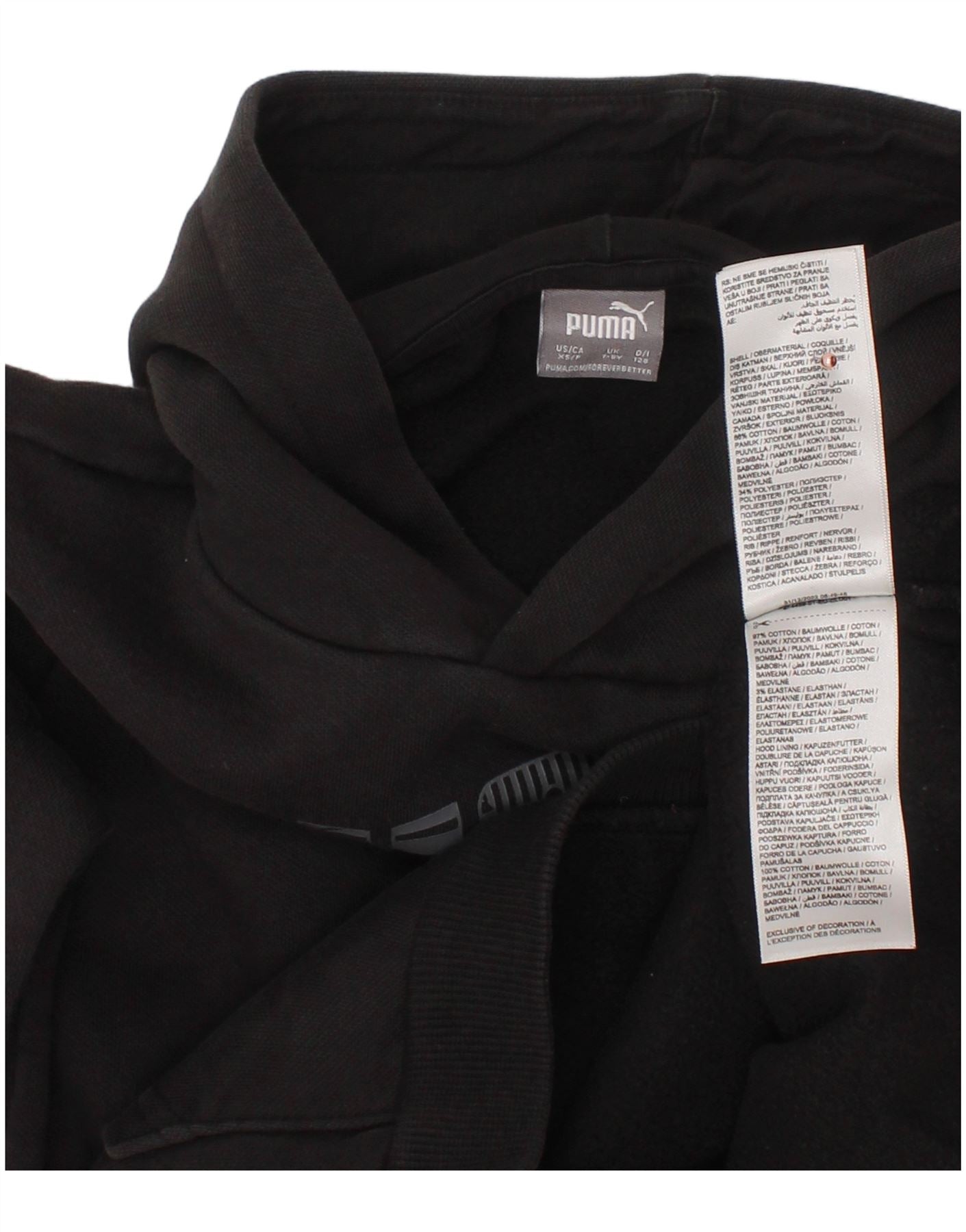 Chłopięcy sweter z kapturem i grafiką PUMA, 7-8 lat, czarna bawełna