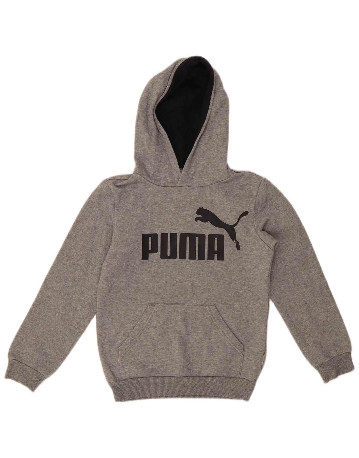 Chłopięcy sweter z kapturem i grafiką PUMA, 9-10 lat, szary