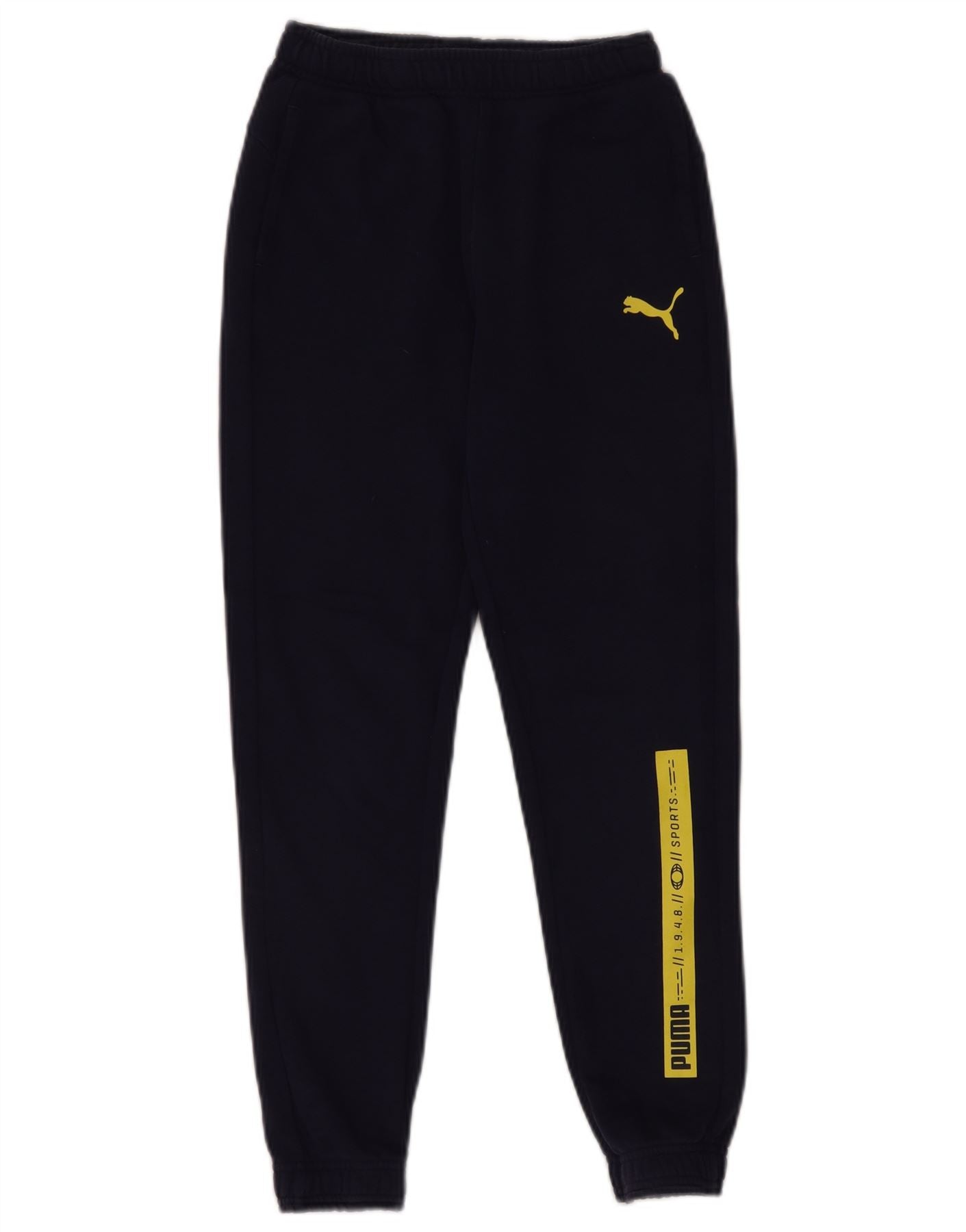 Chłopięce spodnie dresowe PUMA z grafiką, 11-12 lat, granatowa, bawełniana