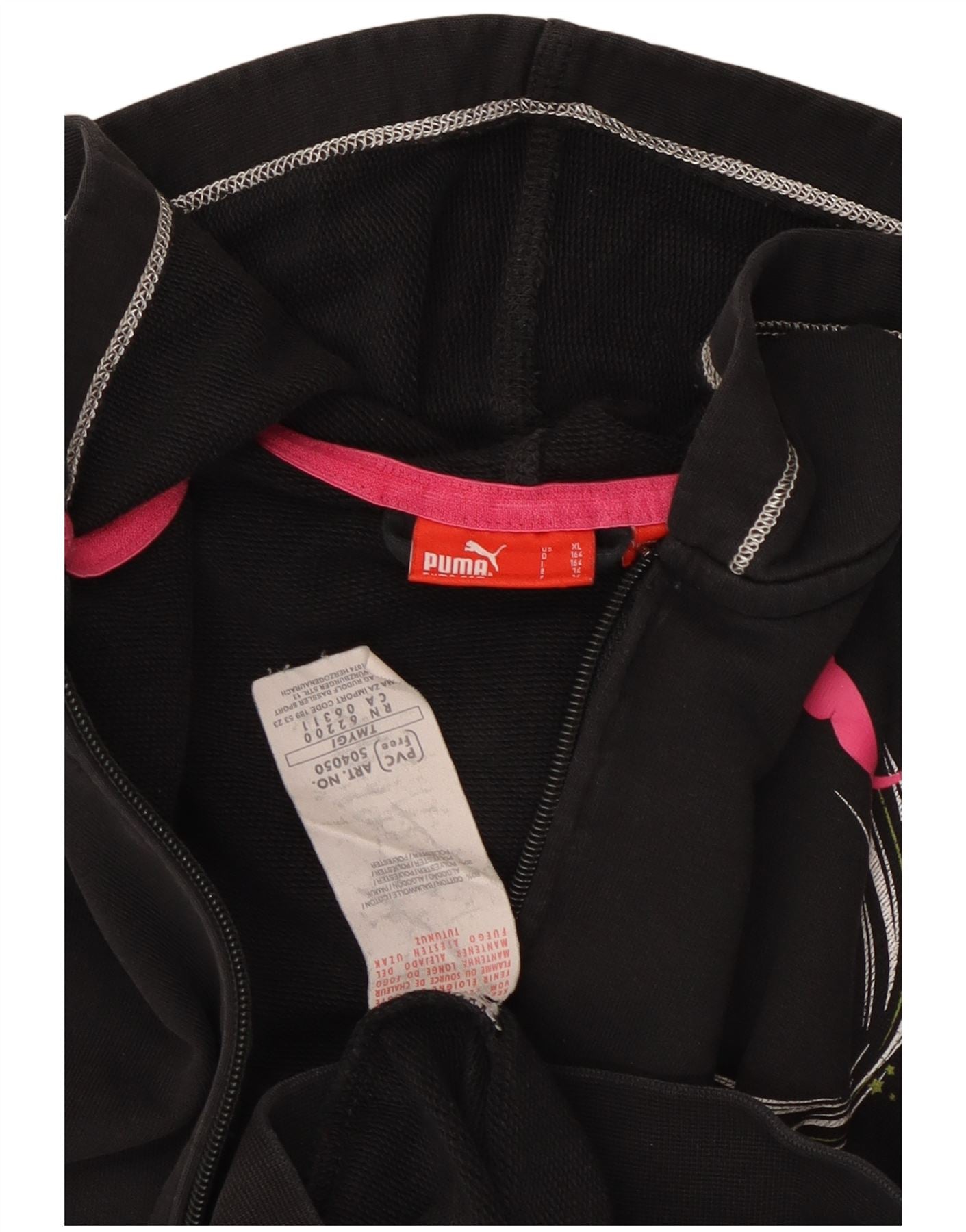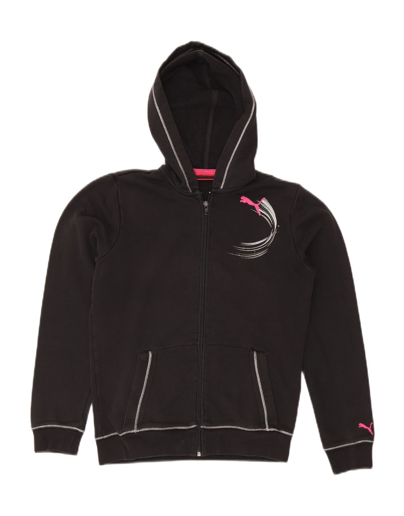 Dziewczęcy sweter z kapturem i grafiką PUMA, zapinany na zamek, 13-14 lat, czarna bawełna