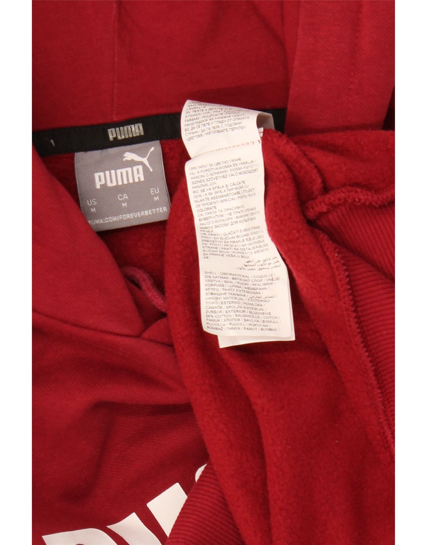 Męski sweter z kapturem i grafiką PUMA, średniej wielkości bordowa bawełna