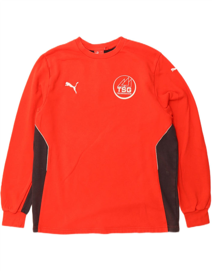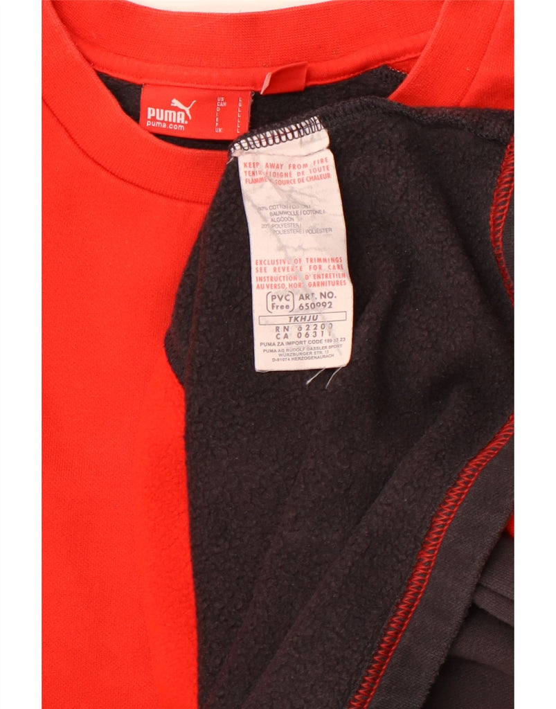 Męski sweter z grafiką PUMA, duży, czerwony, bawełniany z blokami kolorów