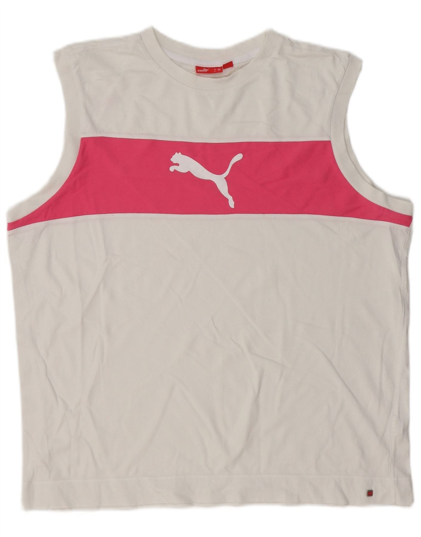 Męska kamizelka z grafiką PUMA XL, biała, bawełniana z blokami kolorów