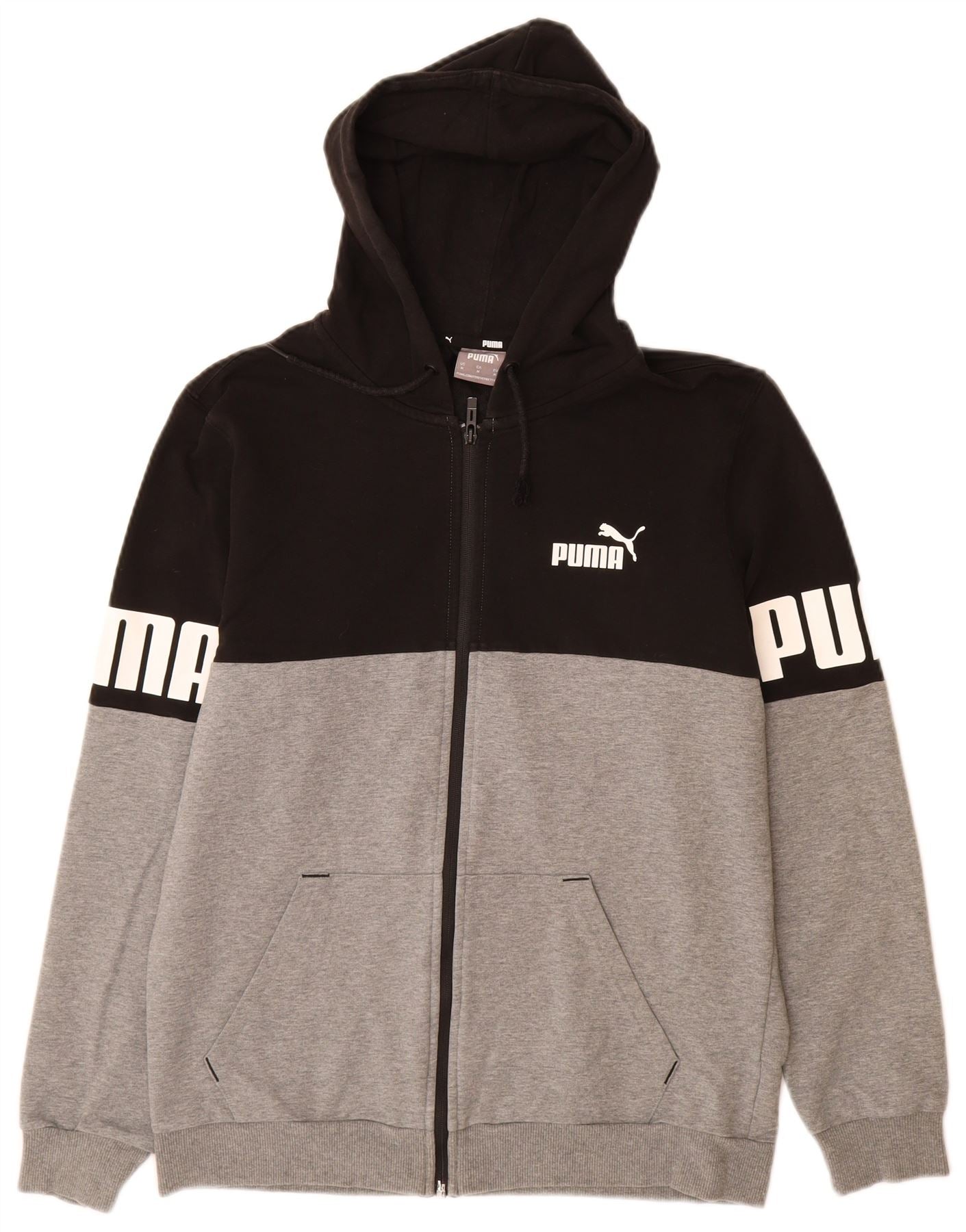 Męski sweter z kapturem i grafiką PUMA, zapinany na zamek, bawełniany, średniej wielkości, w kolorze czarnym