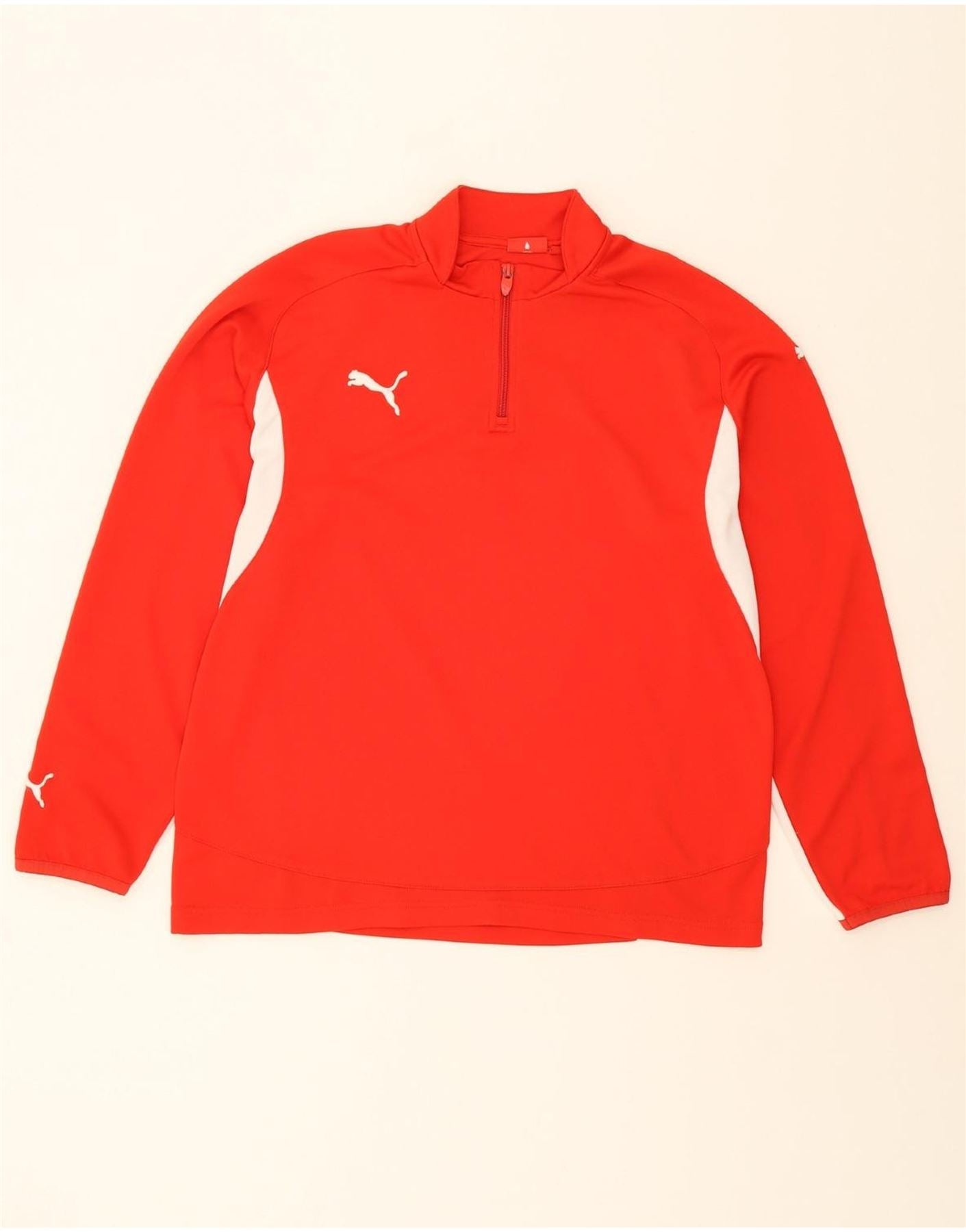 PUMA Mens Zip Neck Pullover Tracksuit Top Medium Red Colourblock