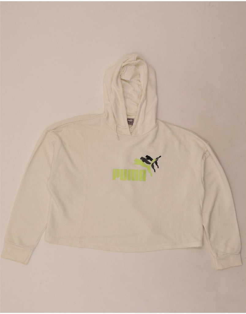 Damski sweter z kapturem i grafiką PUMA, UK 16, duży, złamanej bieli, bawełniany
