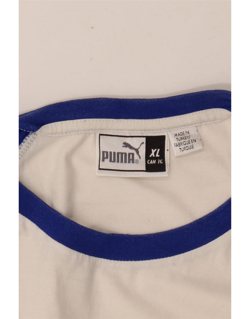 Damska koszulka z grafiką PUMA Top UK 18 XL, biała, z blokami kolorów