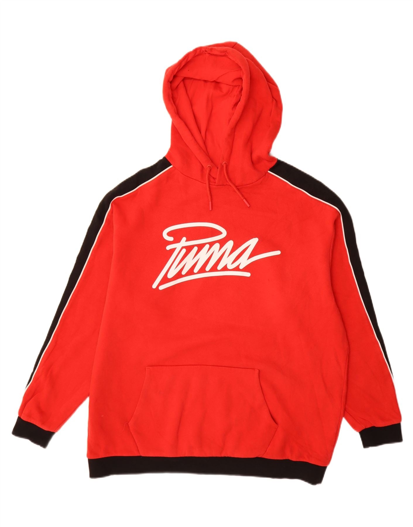 Damski sweter z kapturem, oversize i grafiką PUMA UK 14, duży czerwony blok kolorów