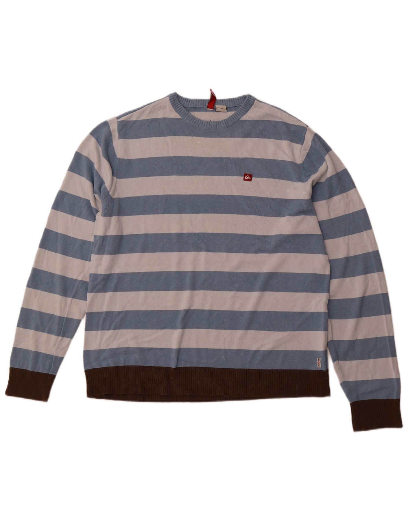 Męski sweter z okrągłym dekoltem QUIKSILVER, duży, akrylowy, w niebieskie paski
