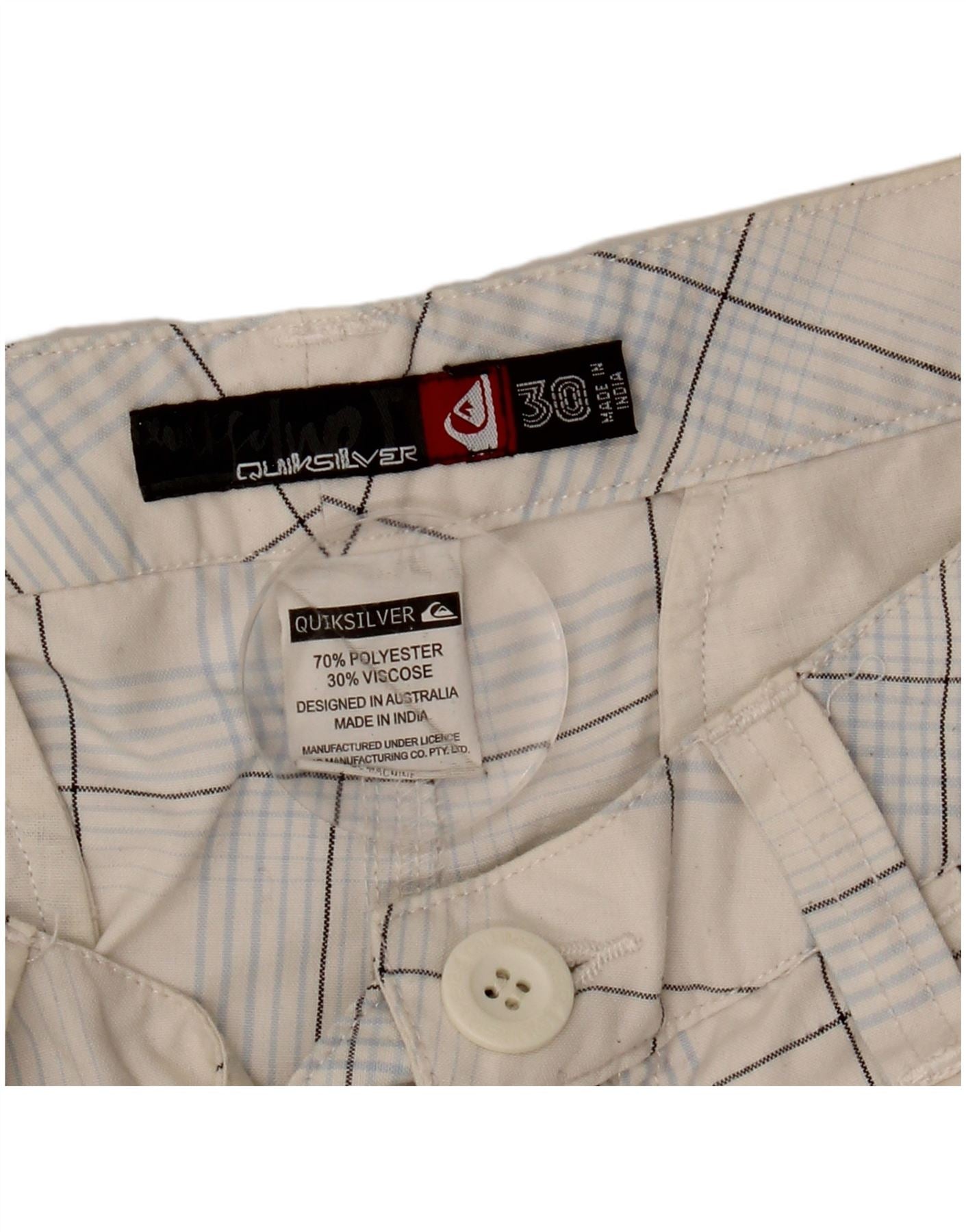Męskie spodenki codzienne QUIKSILVER z grafiką W30, poliester w średnią białą kratkę