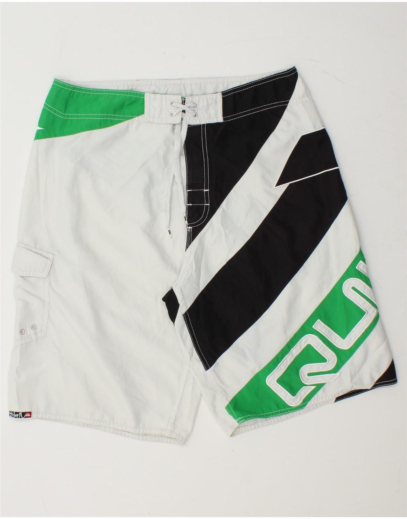 Męskie spodenki kąpielowe QUIKSILVER z grafiką, duży, biały, poliestrowy blok kolorów