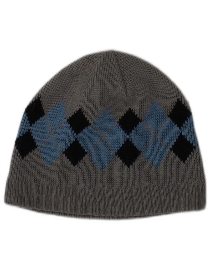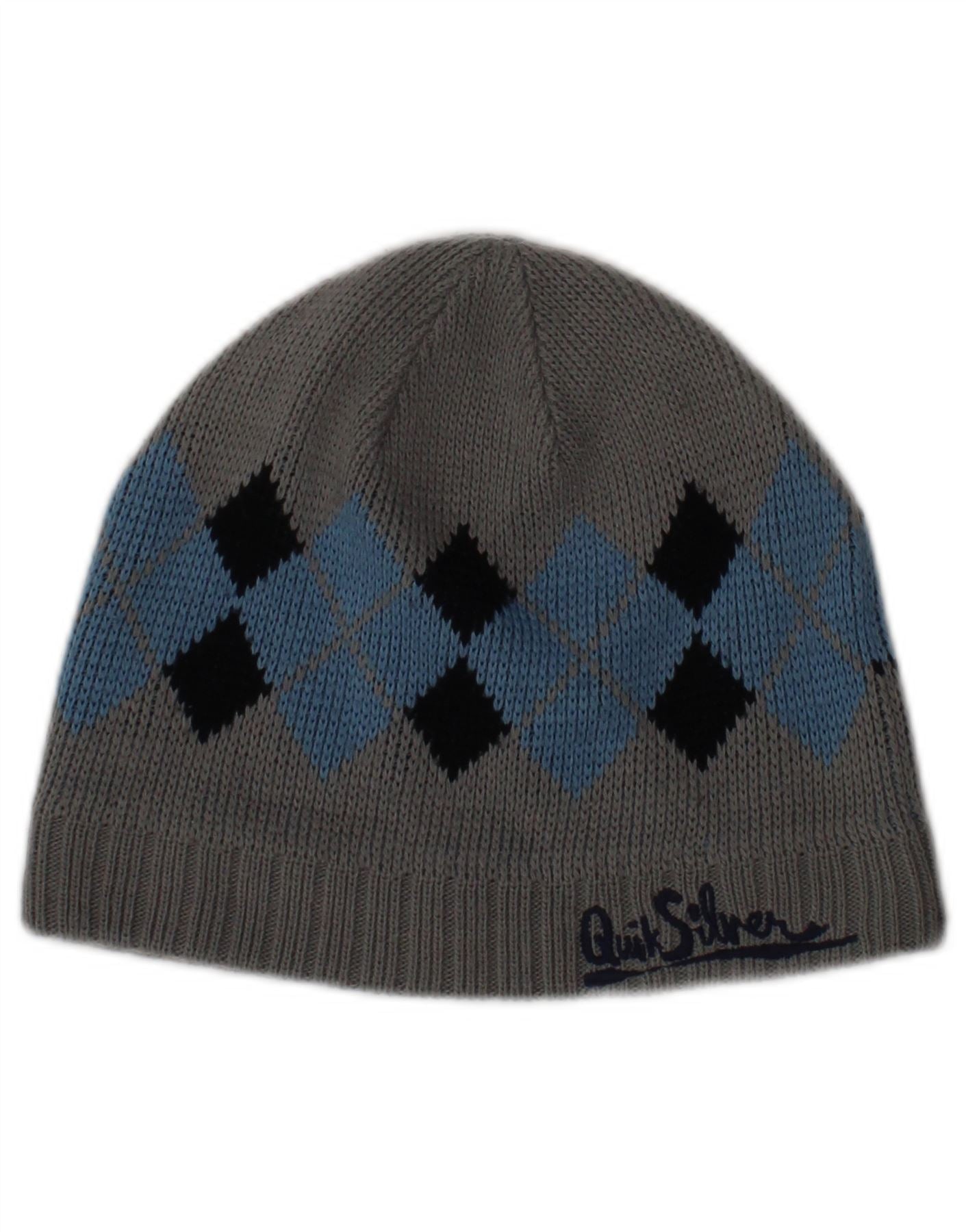 QUIKSILVER Mens Knit Beanie Hat One Size Grey Geometric Acrylic Classic