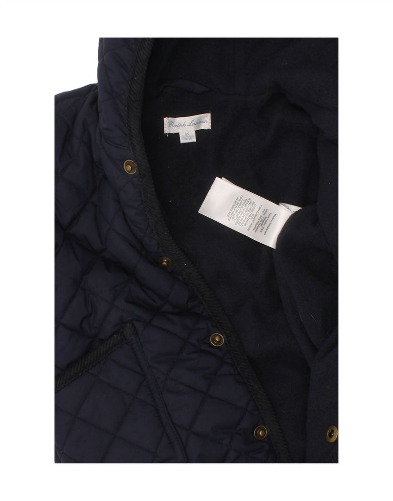 - AI Description: This Polo Ralph Lauren boys' padded coat is crafted from pure cotton with a finely quilted navy blue finish. The woven fabric offers both warmth and durability. It features a practical hood and full lining for enhanced comfort. Long sleeves and a regular fit ensure unrestricted movement. Snap closures provide easy fastening. Multiple pockets add practical functionality. An embroidered logo completes this classic design.