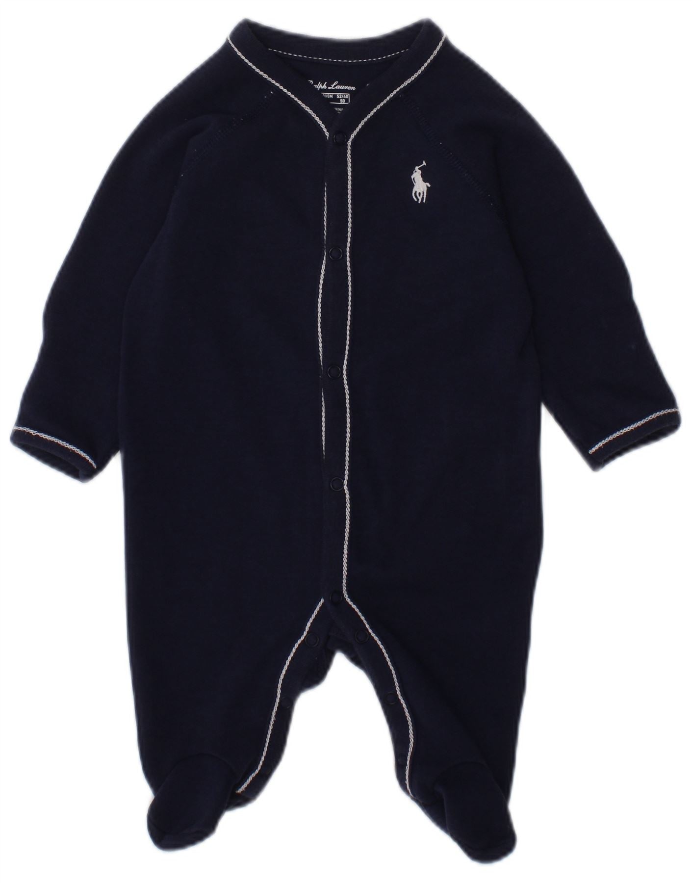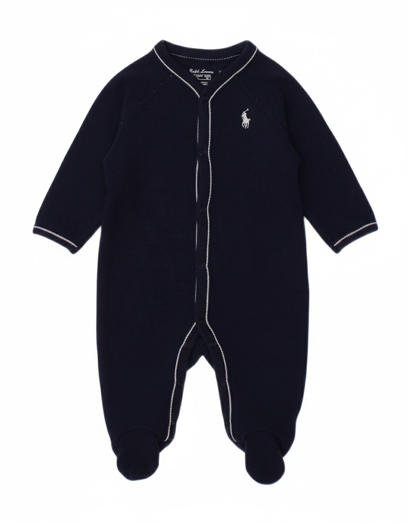 RALPH LAUREN Baby Boys Long Sleeve Jumpsuit 0-3 Months Navy Blue Cotton