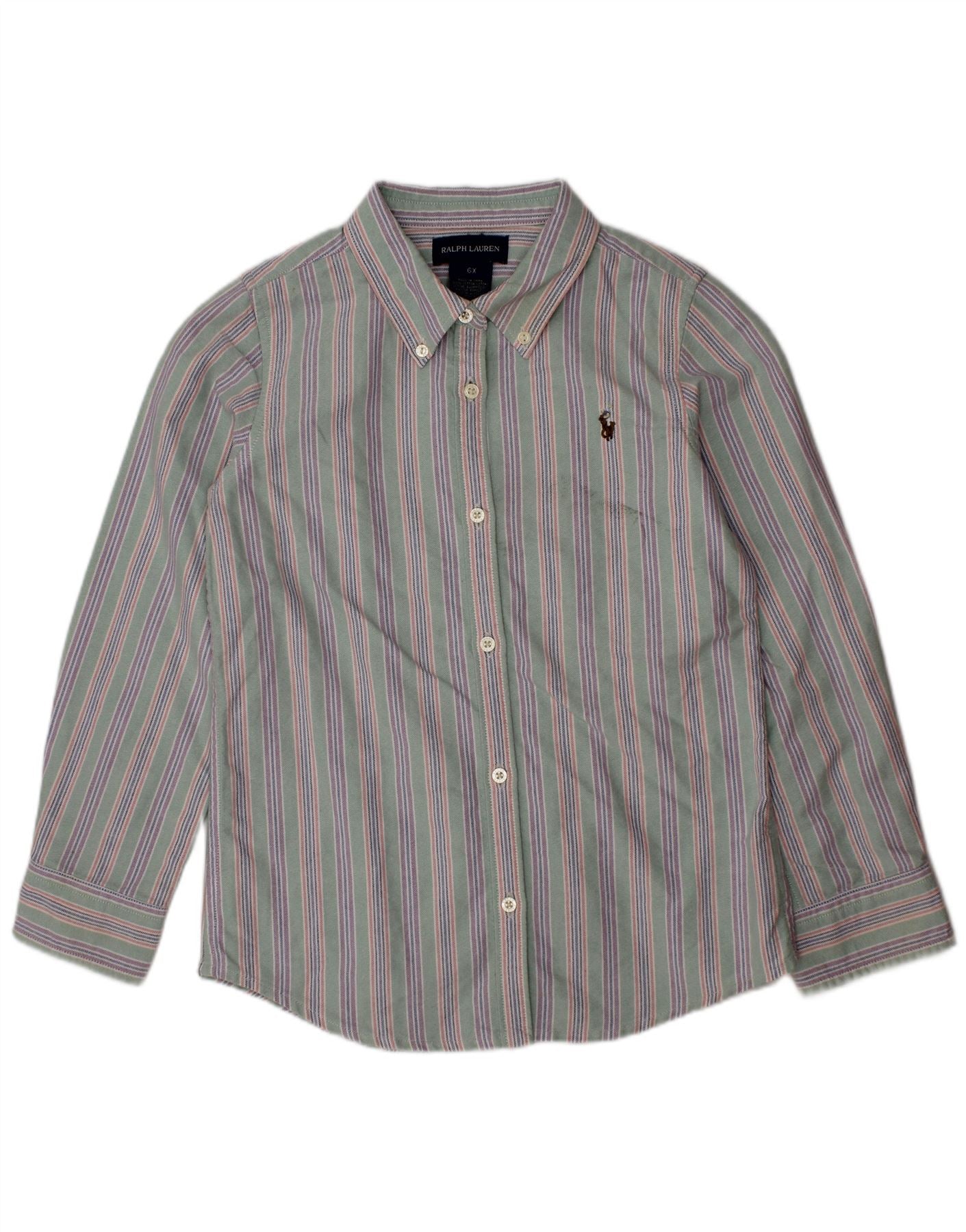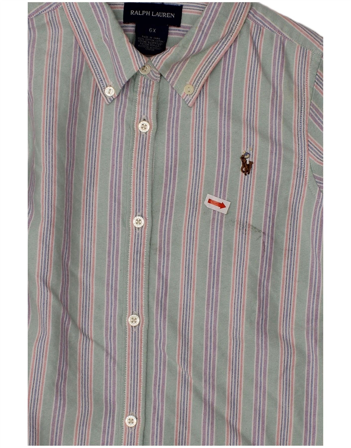 RALPH LAUREN Chłopięca koszula flanelowa, 5-6 lat, bawełniana w zielone paski