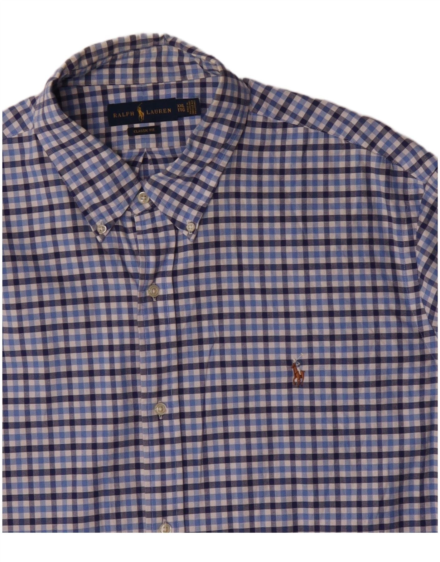 Koszula męska Ralph Lauren o klasycznym kroju 2XL, niebieska bawełniana kratka