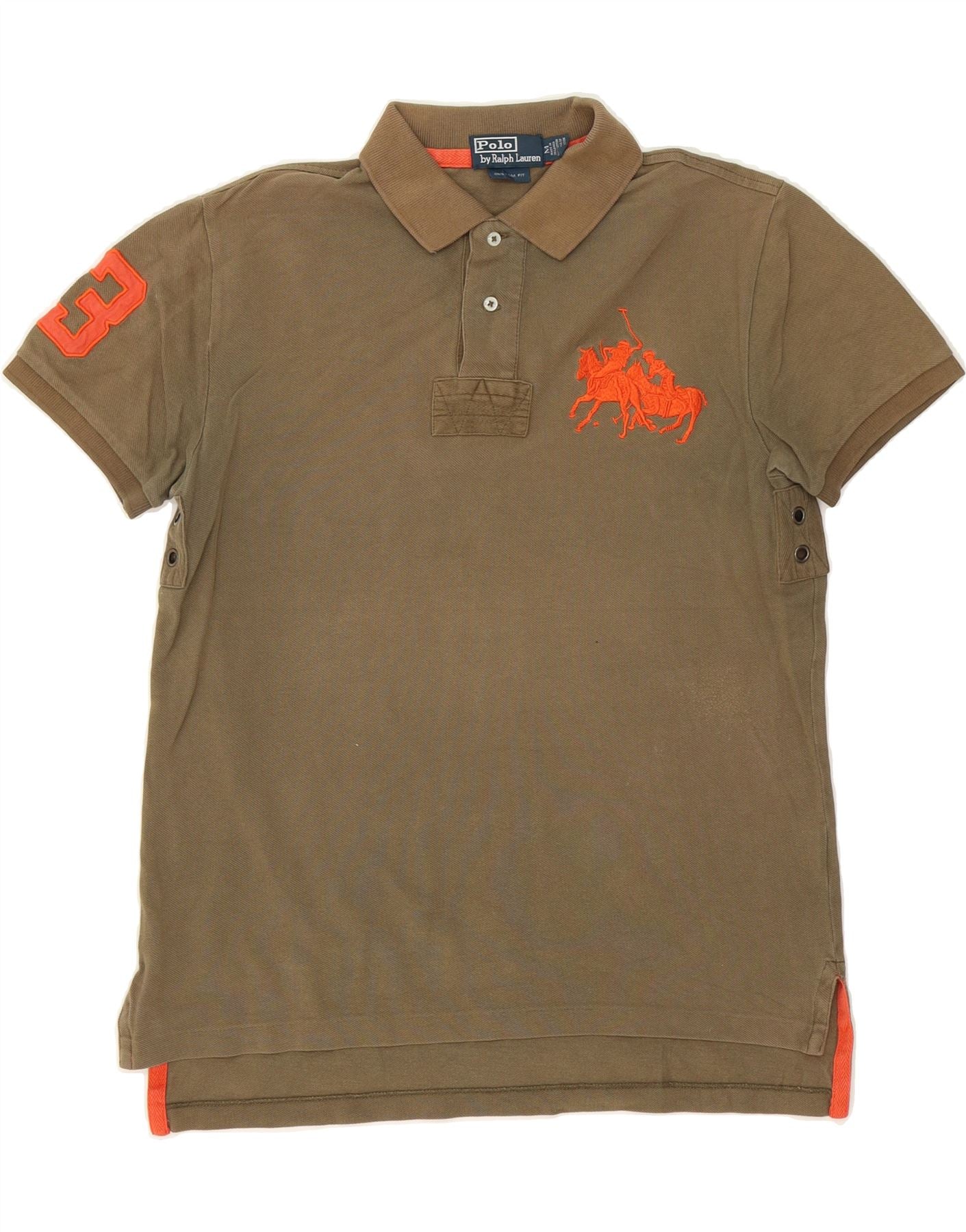 RALPH LAUREN Mens Custom Fit Polo Shirt Medium Brown Cotton