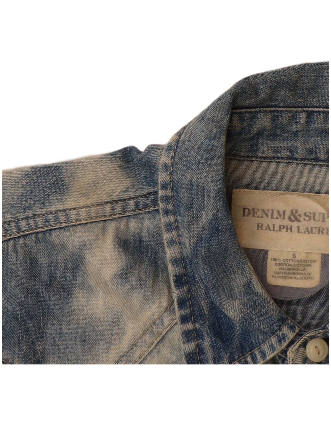 RALPH LAUREN Męska koszula dżinsowa, mała, niebieska, bawełniana