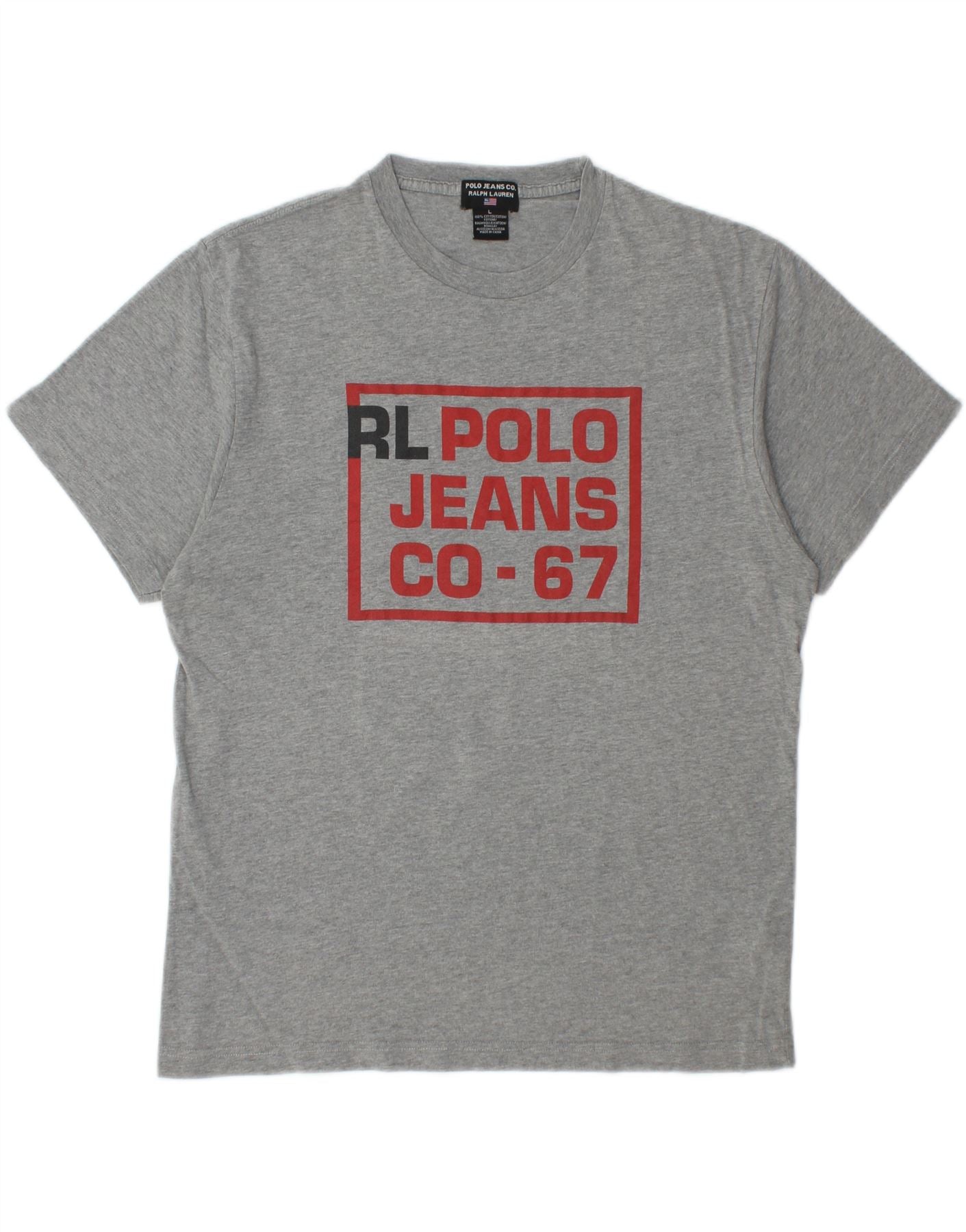 RALPH LAUREN Mens Graphic T-Shirt Top Large Grey Cotton
