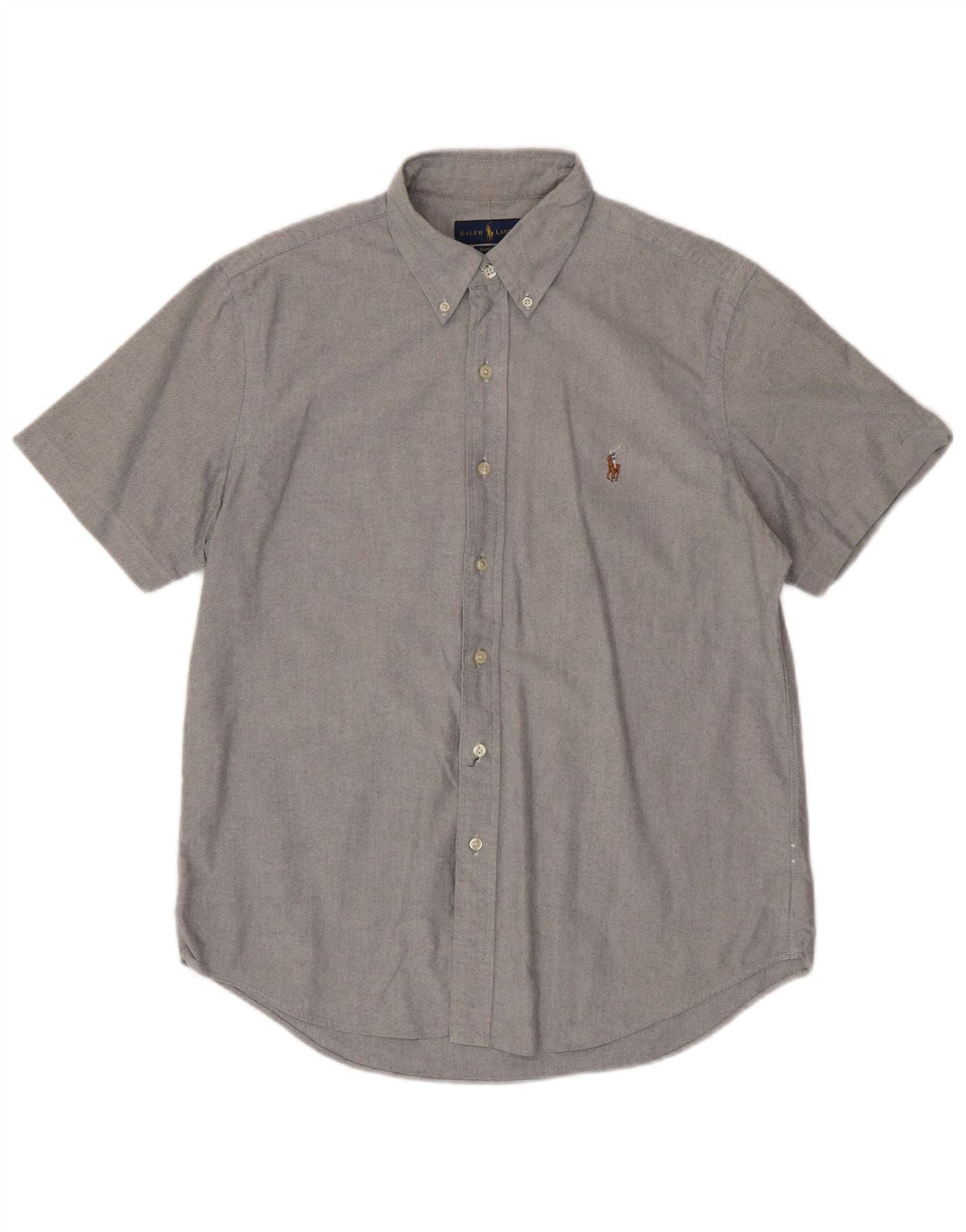 RALPH LAUREN Męska koszula z krótkim rękawem o klasycznym kroju, średnioszara, bawełniana