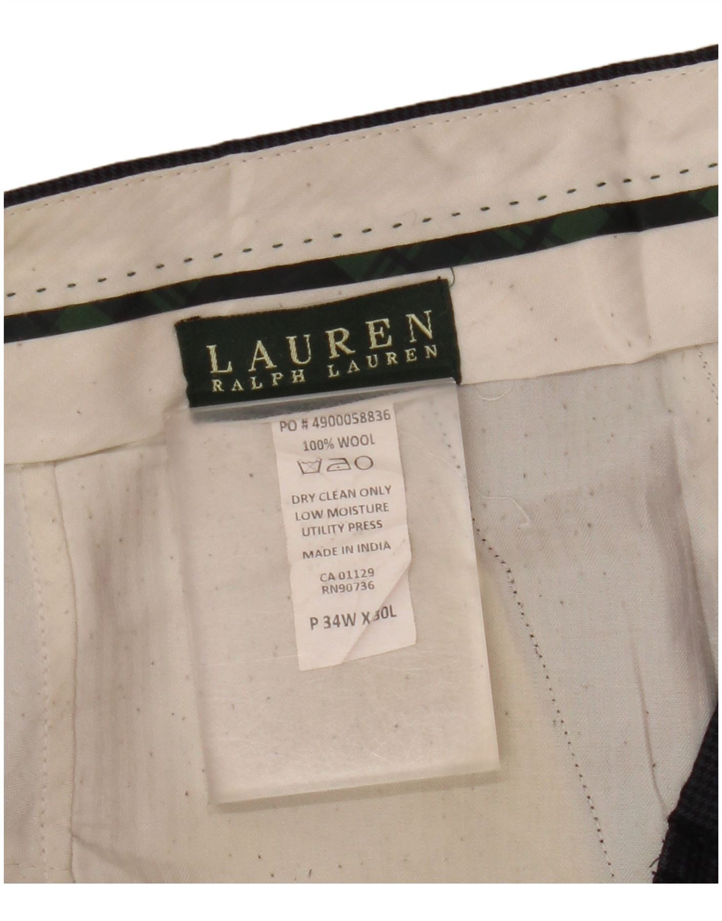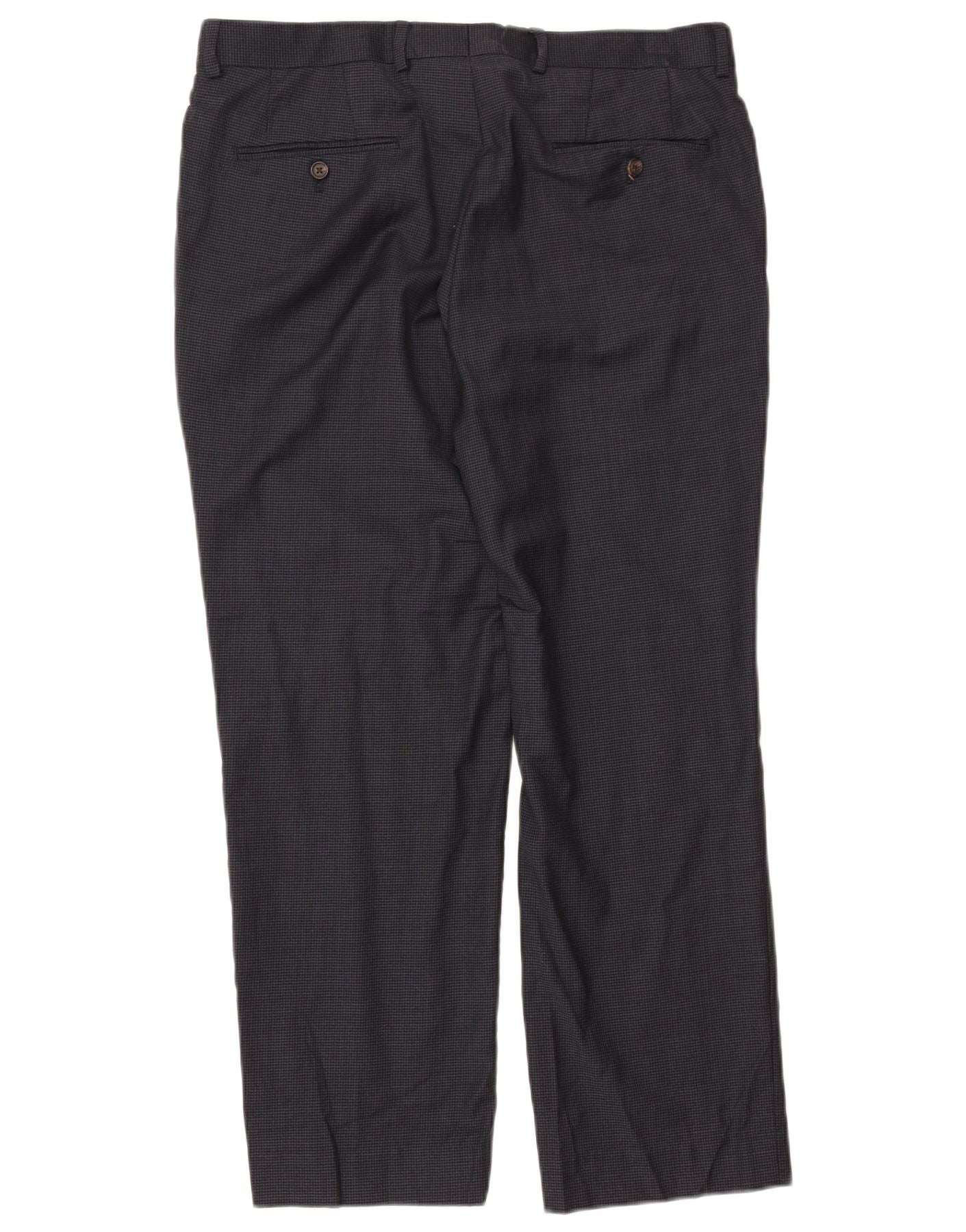 RALPH LAUREN Mens Straight Suit Trousers W34 L30 Navy Blue Houndstooth