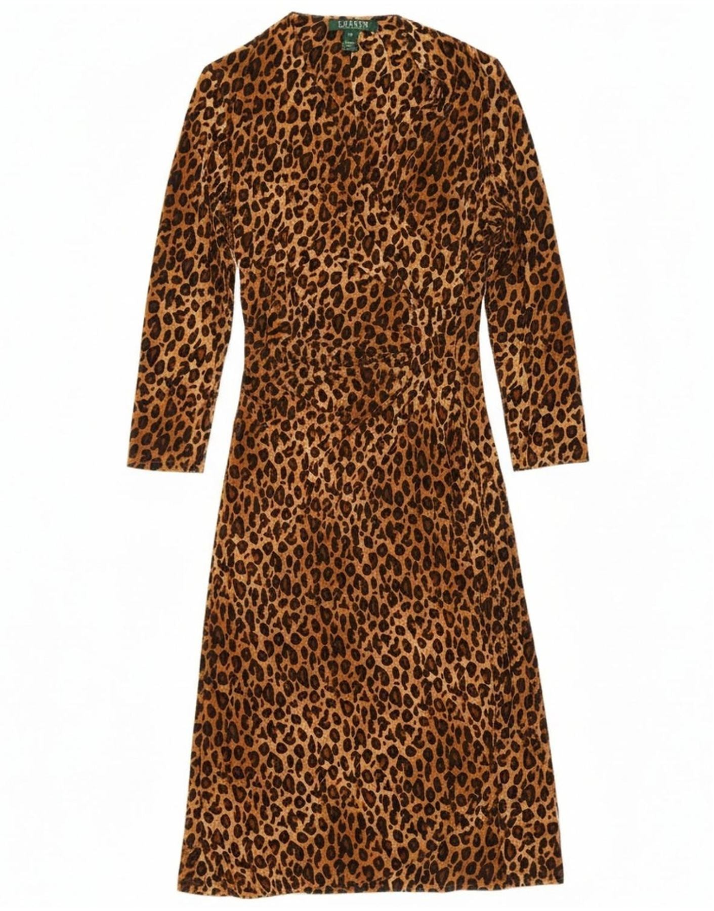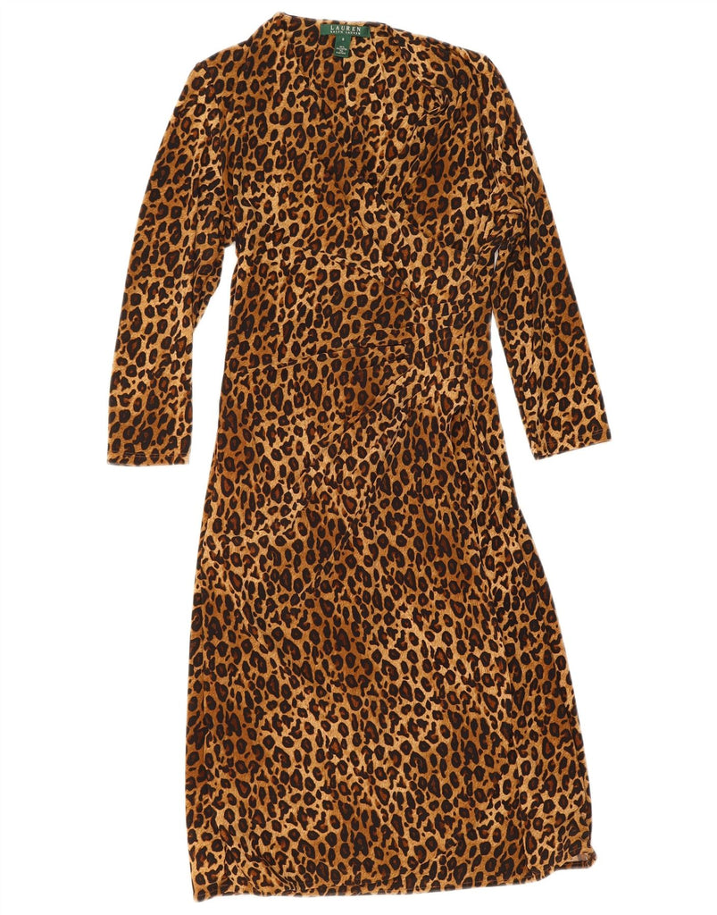 RALPH LAUREN Womens 3/4 Sleeve Maxi Dress UK 10 Small Brown Animal Print
