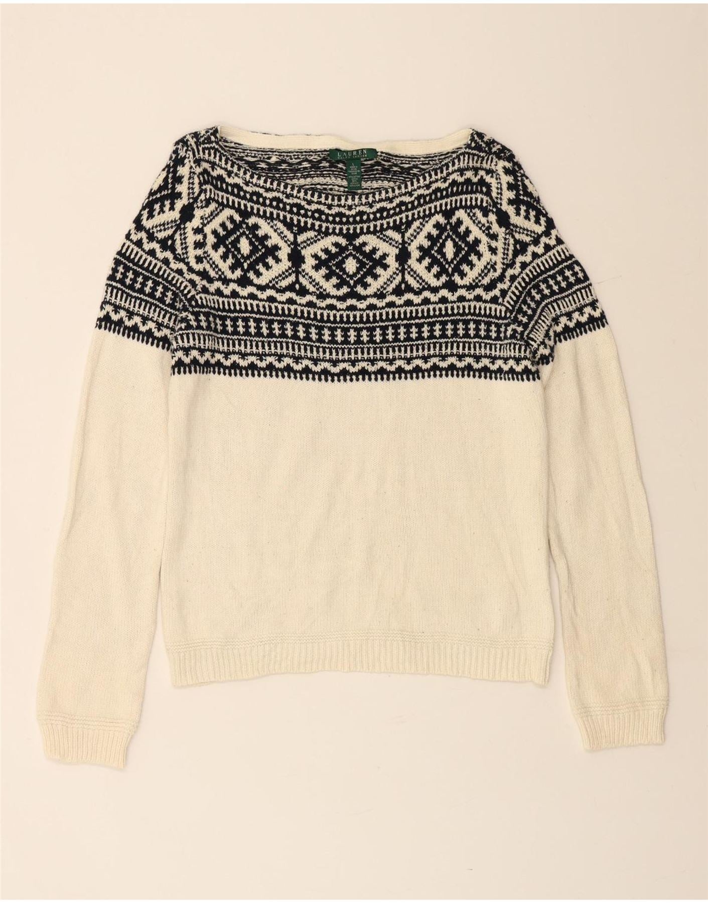 RALPH LAUREN Damski sweter z dekoltem w łódkę UK 16, duży w kolorze złamanej bieli
